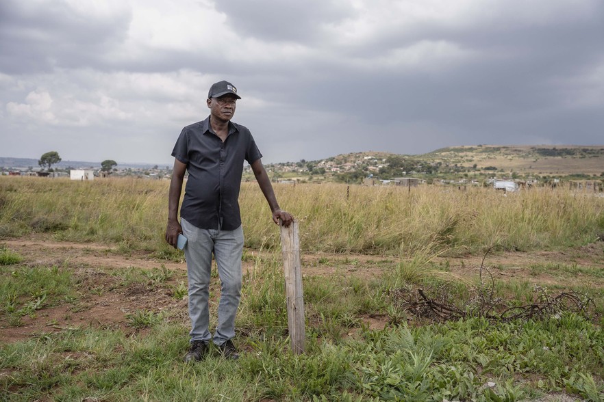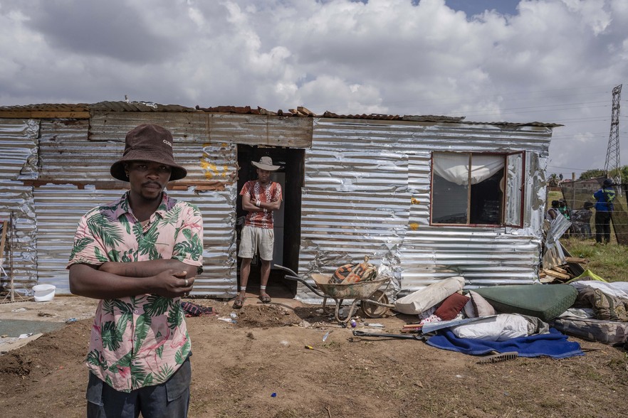 The brothers say they moved onto the land in January with their mother and uncle. Their mother, who works as a caregiver in Johannesburg’s northern suburbs, is the only breadwinner.