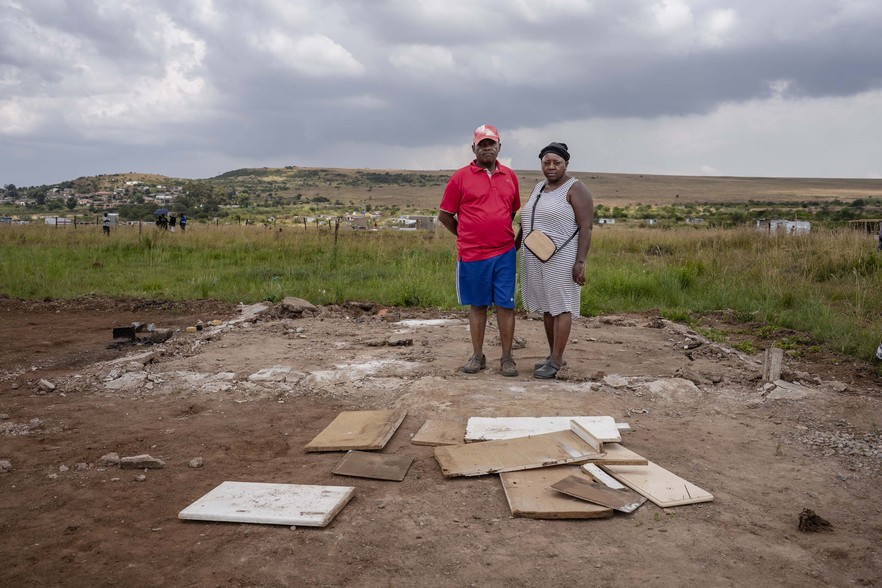 Dumisani Mpanza and Lindiwe Tshabalala on the plot where their home once stood.