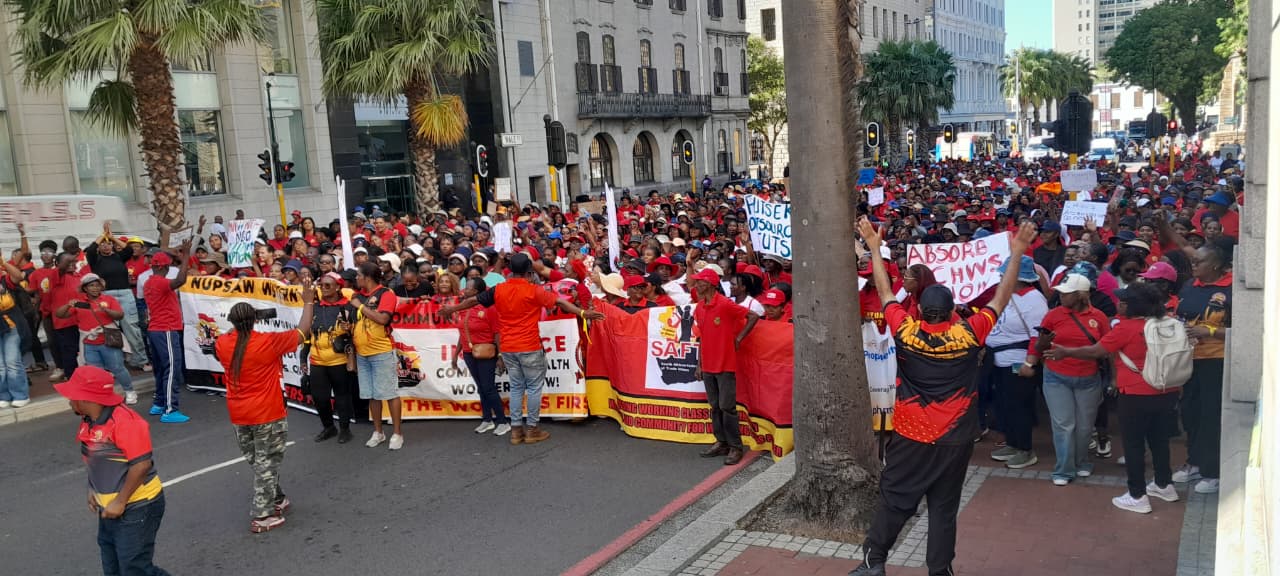 Community health workers marched through the streets to the provincial legislature in Cape Town on Thursday to demand that the provincial health department employ them permanently.