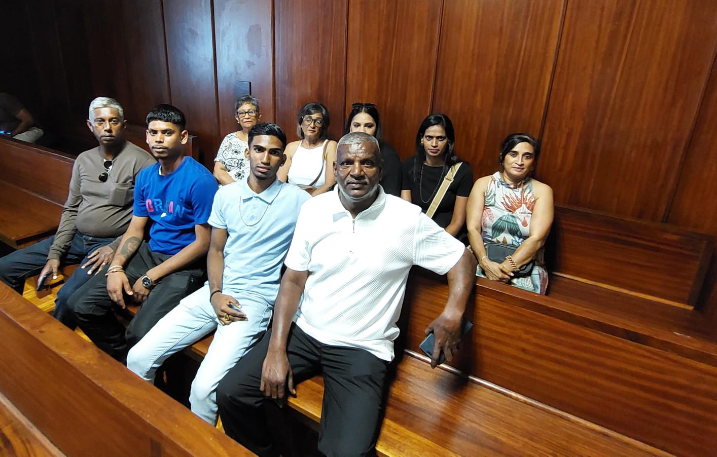 Regan Naidoo’s family sit in the gallery at Durban Magistrates Court where a trial date has been set down for December 2026. Photo: Benita Enoch