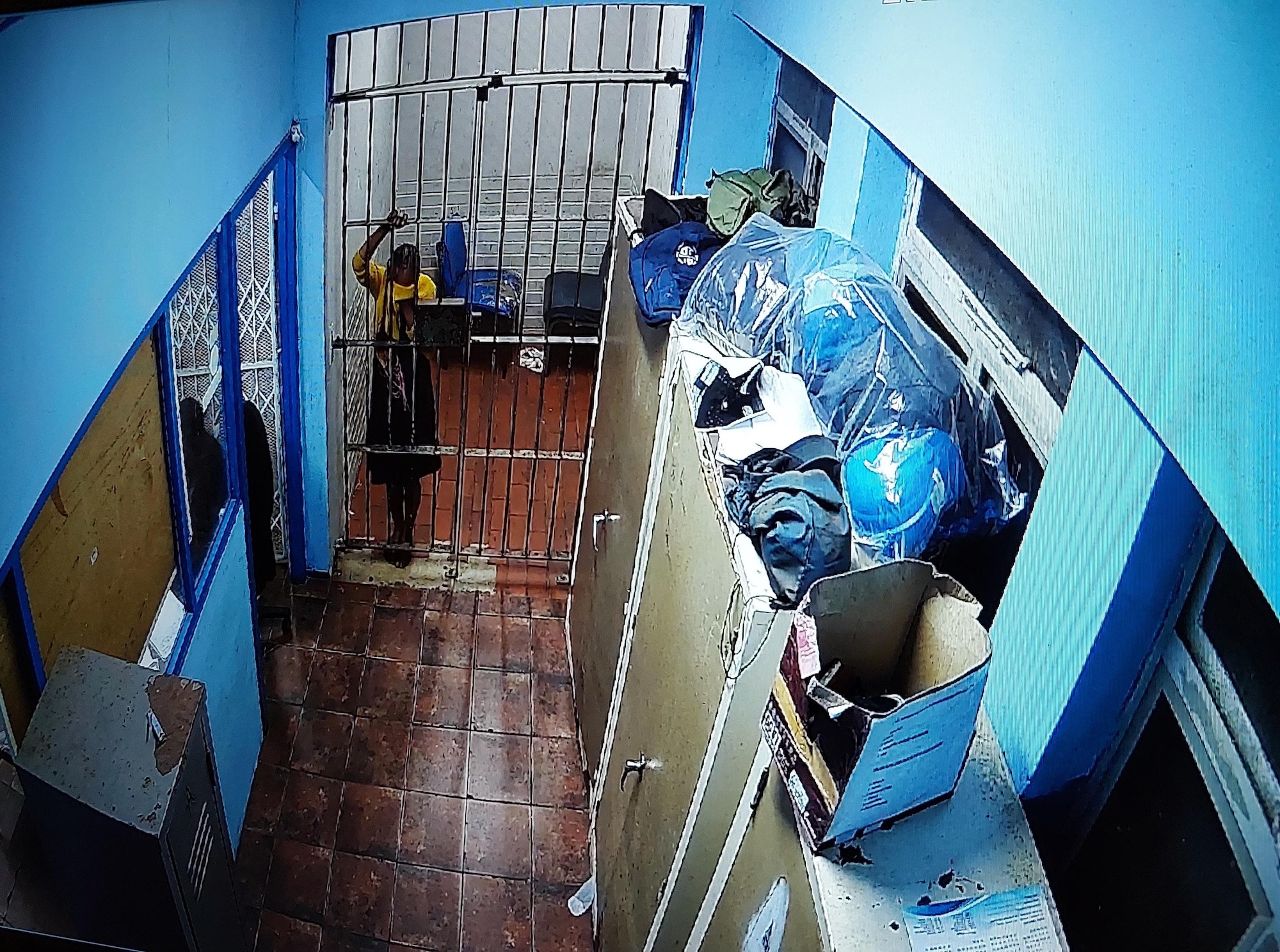Q in CCTV footage entered into evidence crying and wiping her eyes while left in police holding cells.