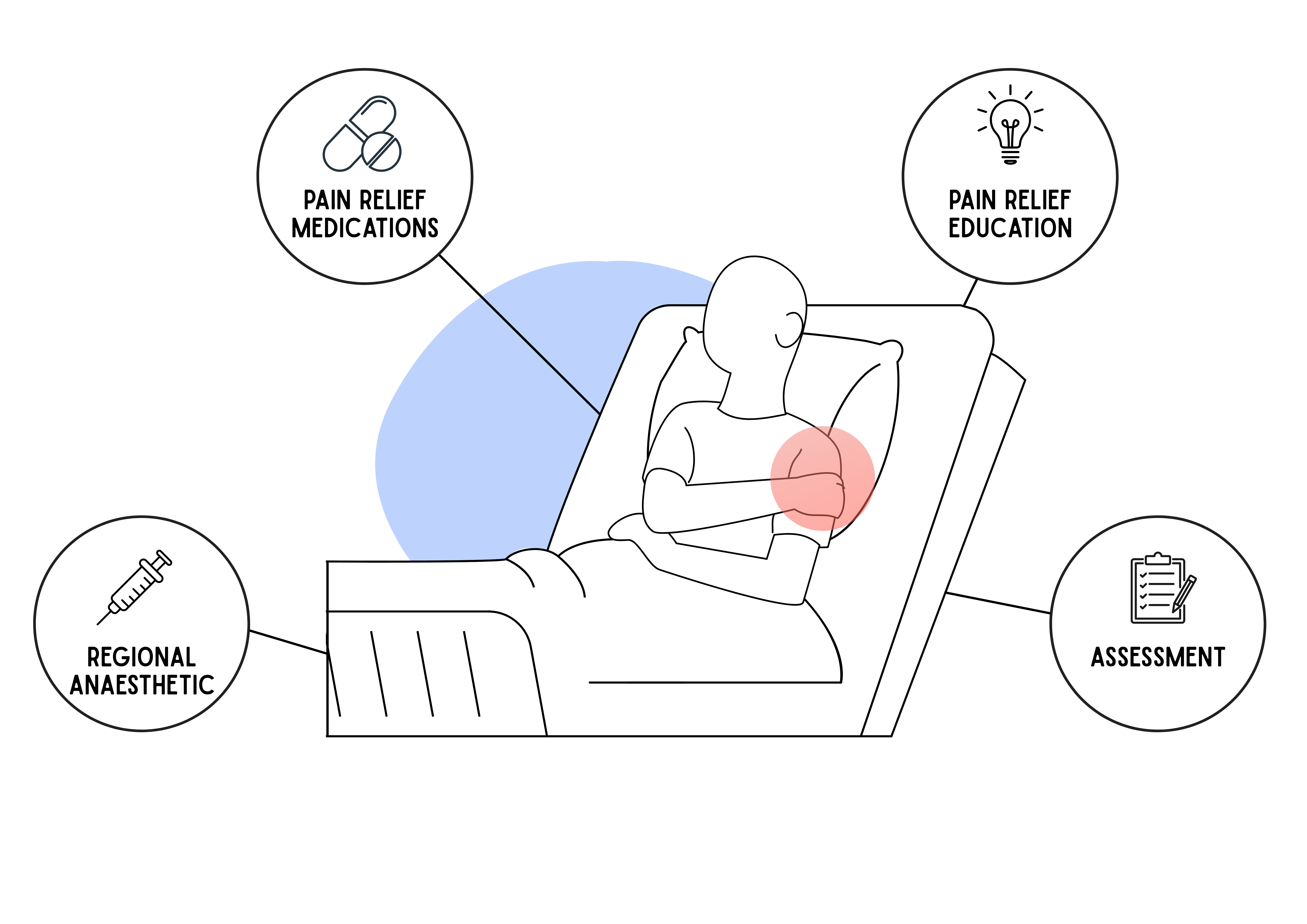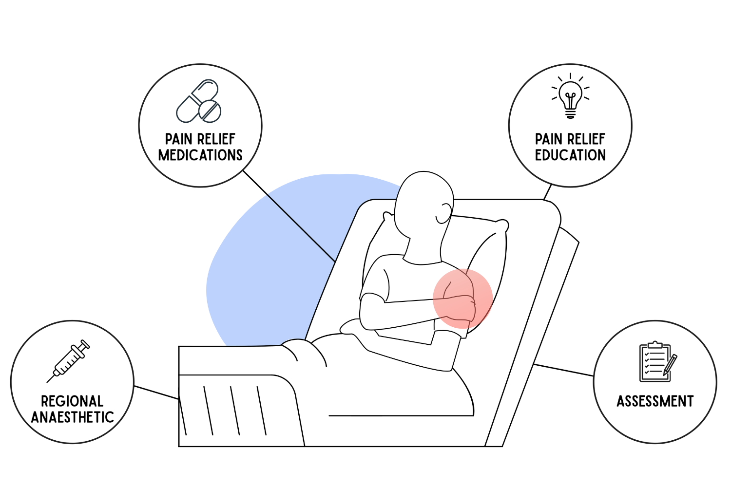 - Patients receive pain relief for the area around their wound, in addition to the main operation.