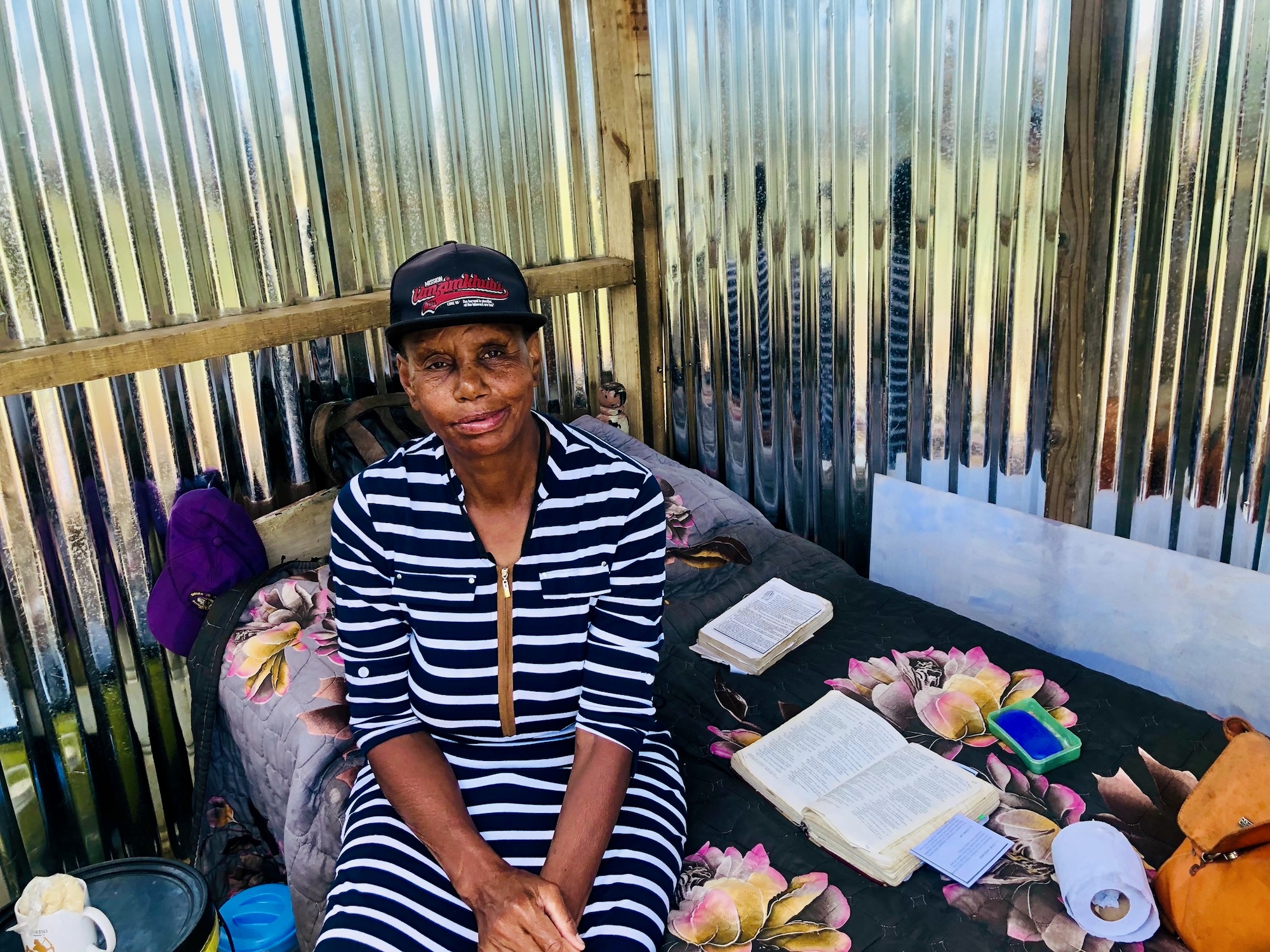 Claudetta Van Wyk rebuilt her shack after it was demolished last week. “I am praying for the government to give me this piece of land,” she said. Photo: Kimberly Mutandiro