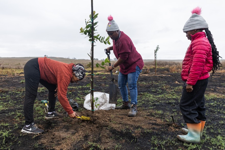 Volunteers from the Fisantekraal community plant indigenous trees on the banks of the Mosselbank River.