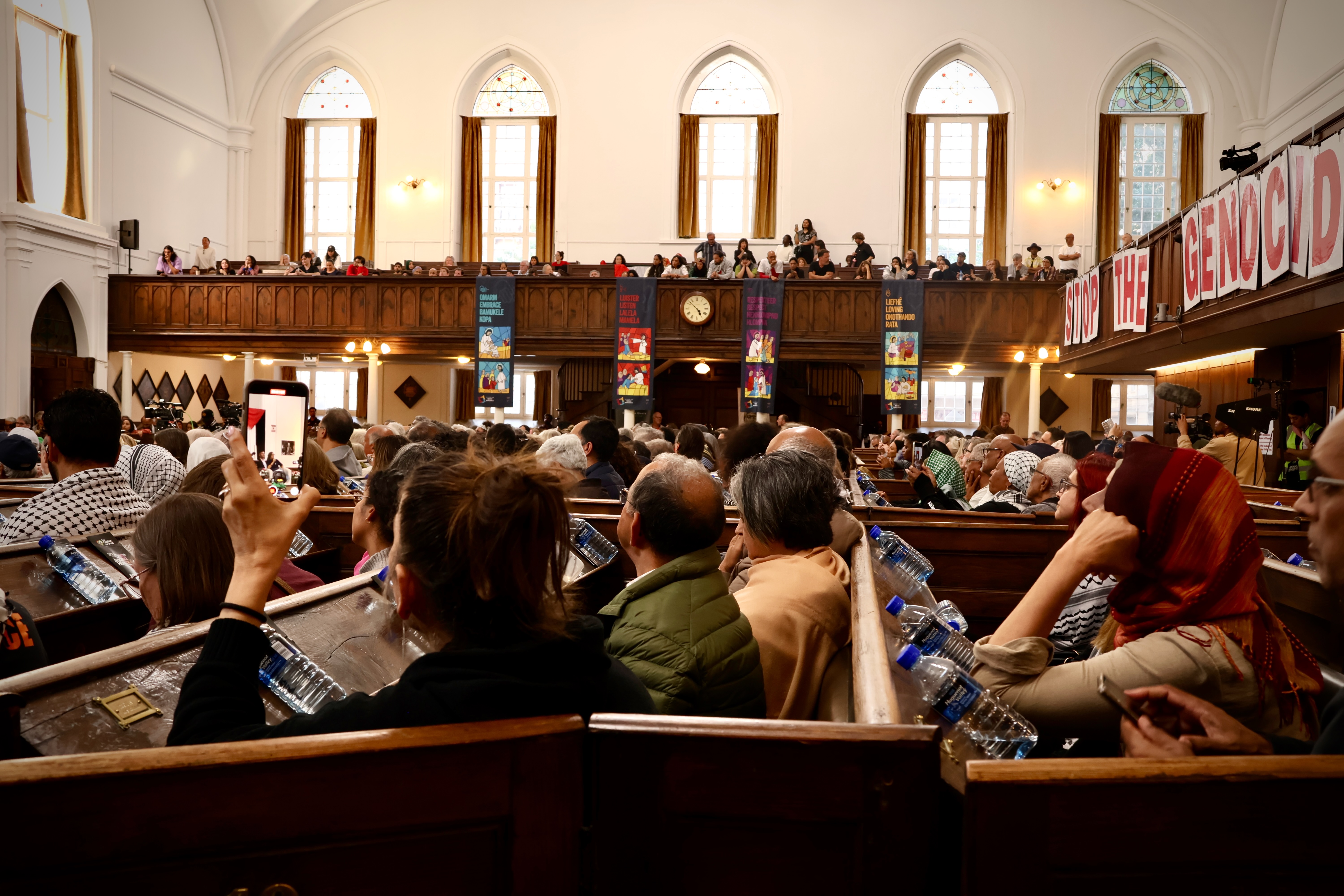 Francesca Albanese, UN Special Rapporteur on the situation of human rights in the Palestinian Territory occupied since 1967, speaking at the Groote Kerk in Cape Town on Sunday 26 October. Photos: Matthew Hirsch
