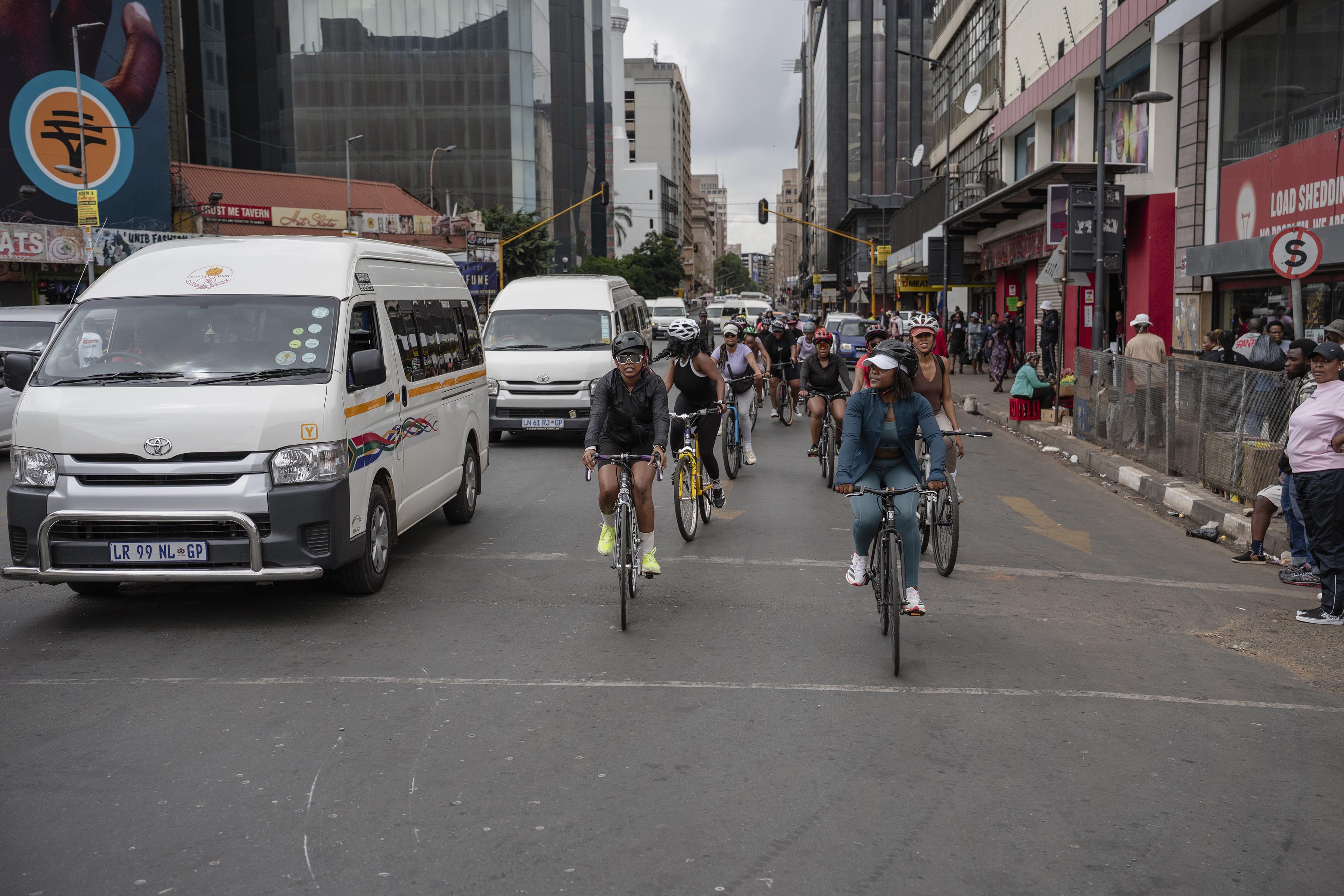 Whoops of joy can be heard from the riders as they make their way through the streets of Johannesburg.