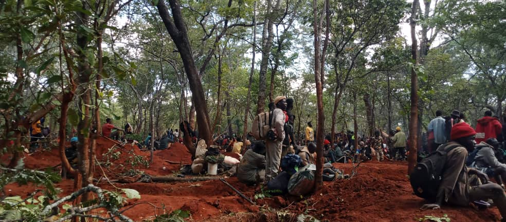 People illegally mine for gold in this forest in north-western Zambia. Photos and videos supplied