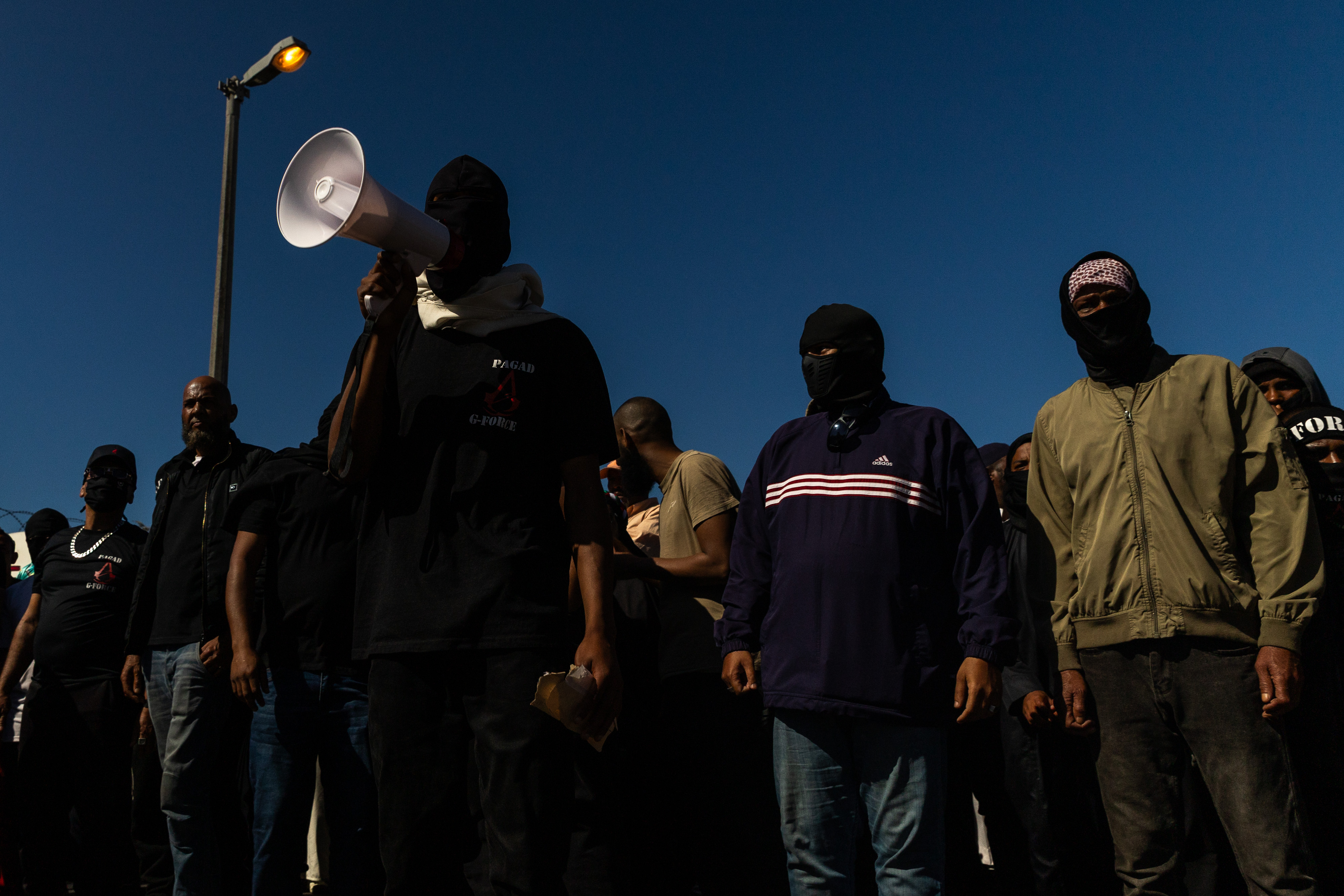 PAGAD G-Force members, who led the protest, wore masks to hide their identities.