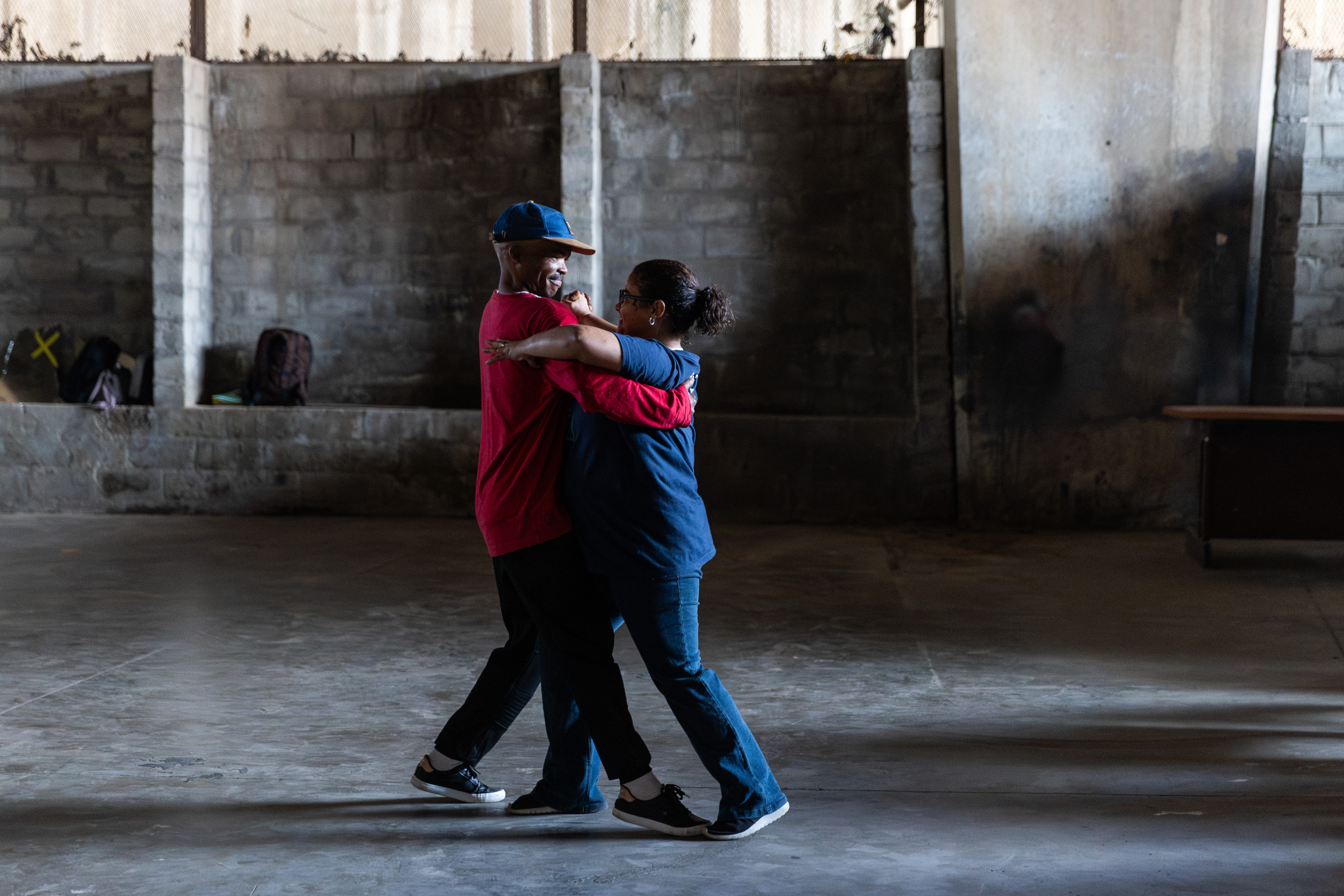 The space under the bridge is transformed into a dance studio twice a week for rehearsals.
