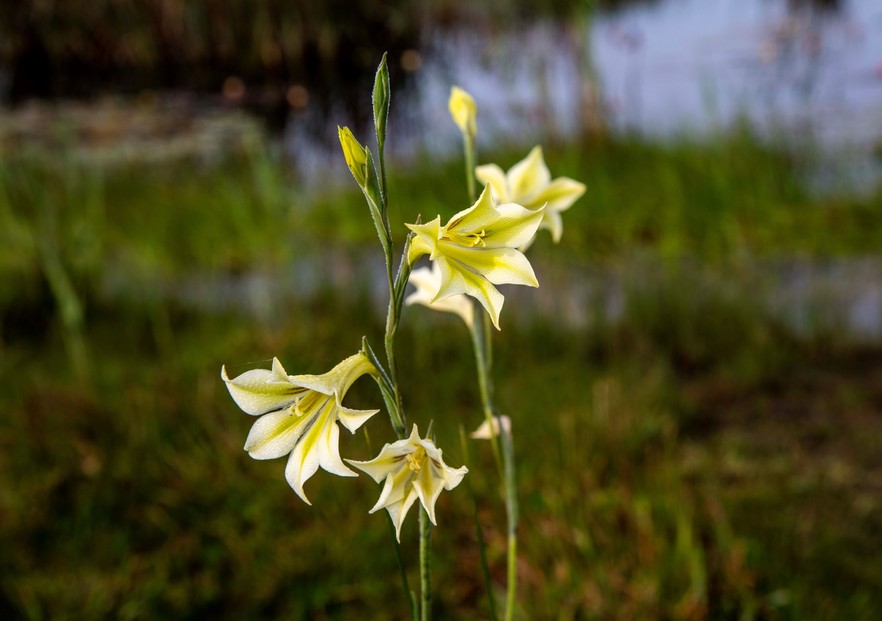 A gladiolus species, Gladiolus tristis, also known as the Marsh Afrikaner or Aandblom (evening flower), blooming in the Nuwejaars Wetlands Special Management Area. Photo: John Yeld