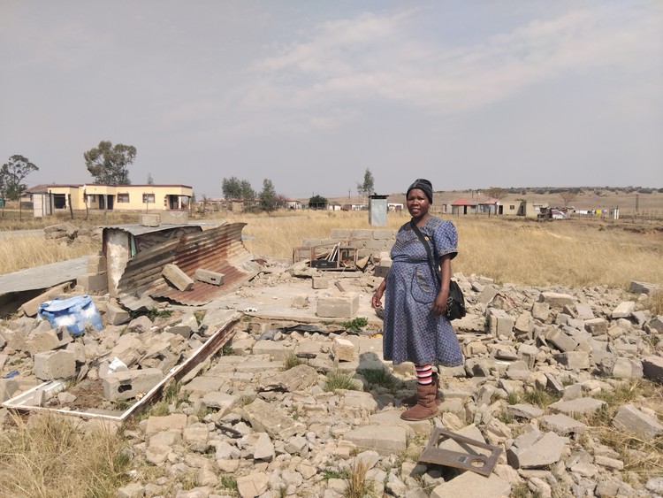 Thandi Masondo stands in the rubble of what used to be her home. Photo: Bongane Motaung