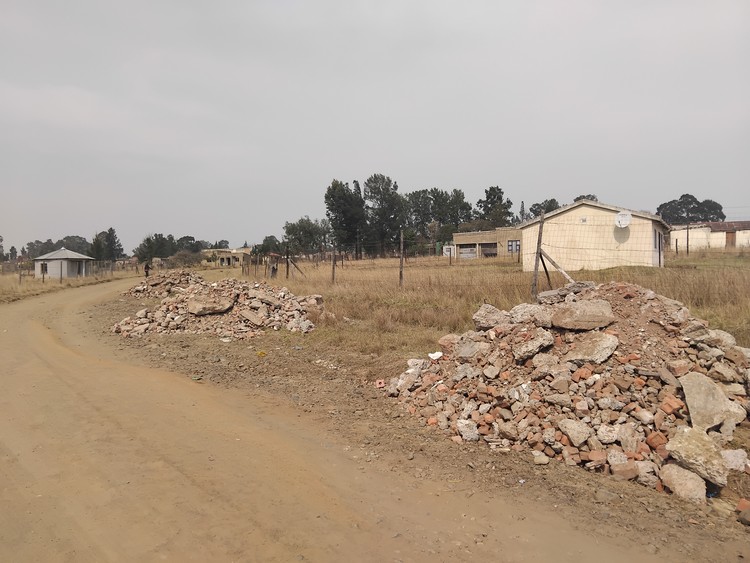 Rubble that villagers in Nquthu have cleared from the road. With no one to fetch it, it sits next to the road in large piles. Photo: Bongane Motaung