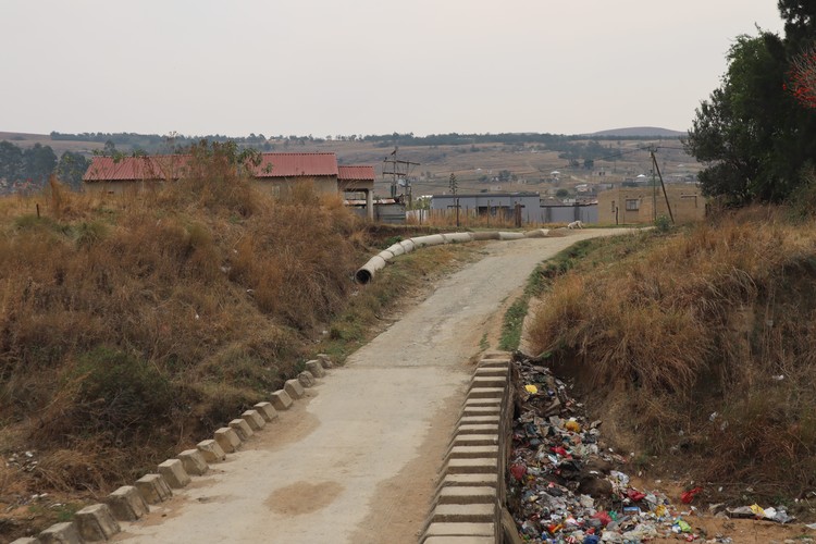 About a kilometre away, Matshombeni Bridge, over the same river, floods even in light rain, says Mthembu. Residents have pooled together funds to buy concrete drain pipes to redirect the water, he says, and are trying to clear culverts and storm drains clogged with rubbish and debris.