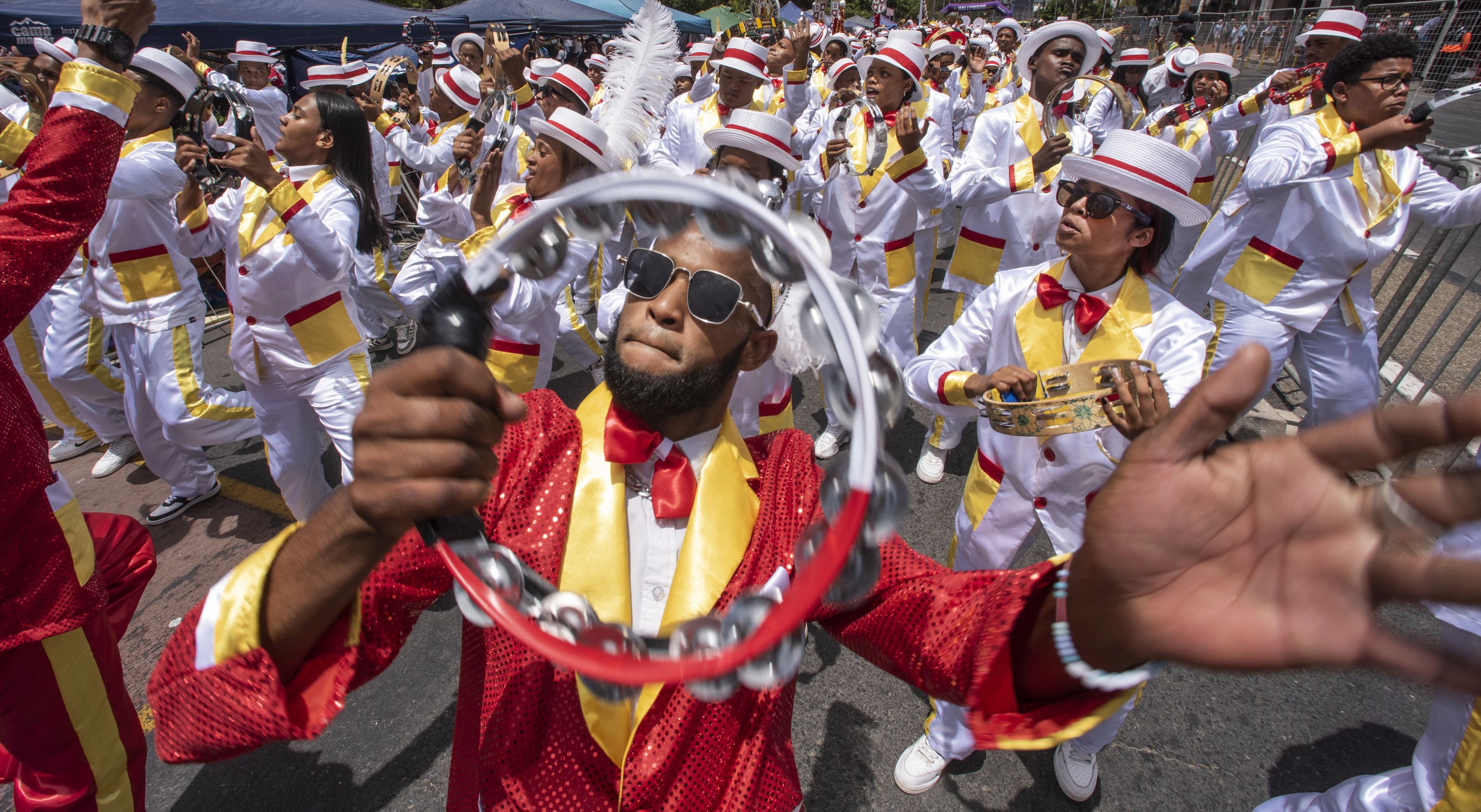 The youths from the Original D6 Hanover Minstrels seemed unaffected by the heat while entertaining the spectators lining the fan walk.