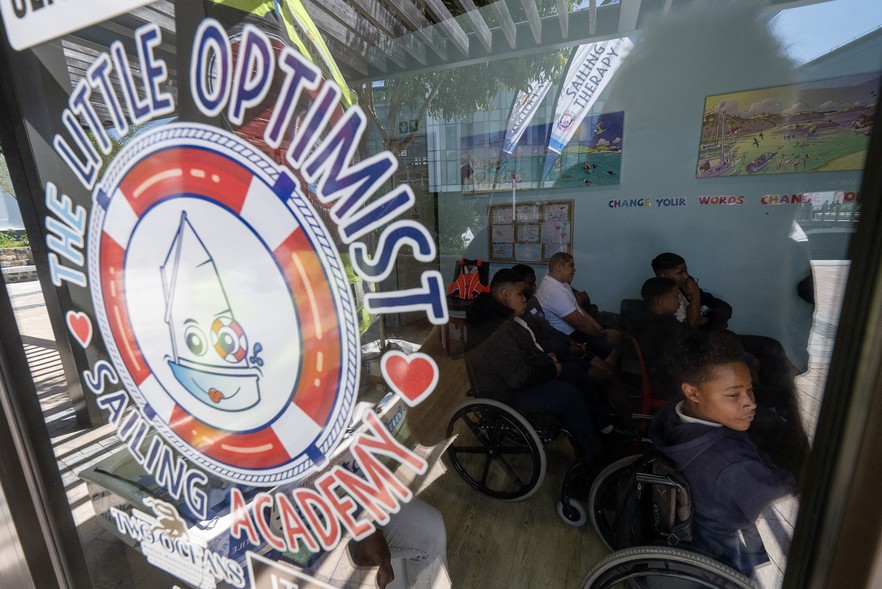 The Little Optimist Trust sailing academy classroom at the Waterfront, where a group from Vista Nova special needs school children receive instruction before heading onto the water.