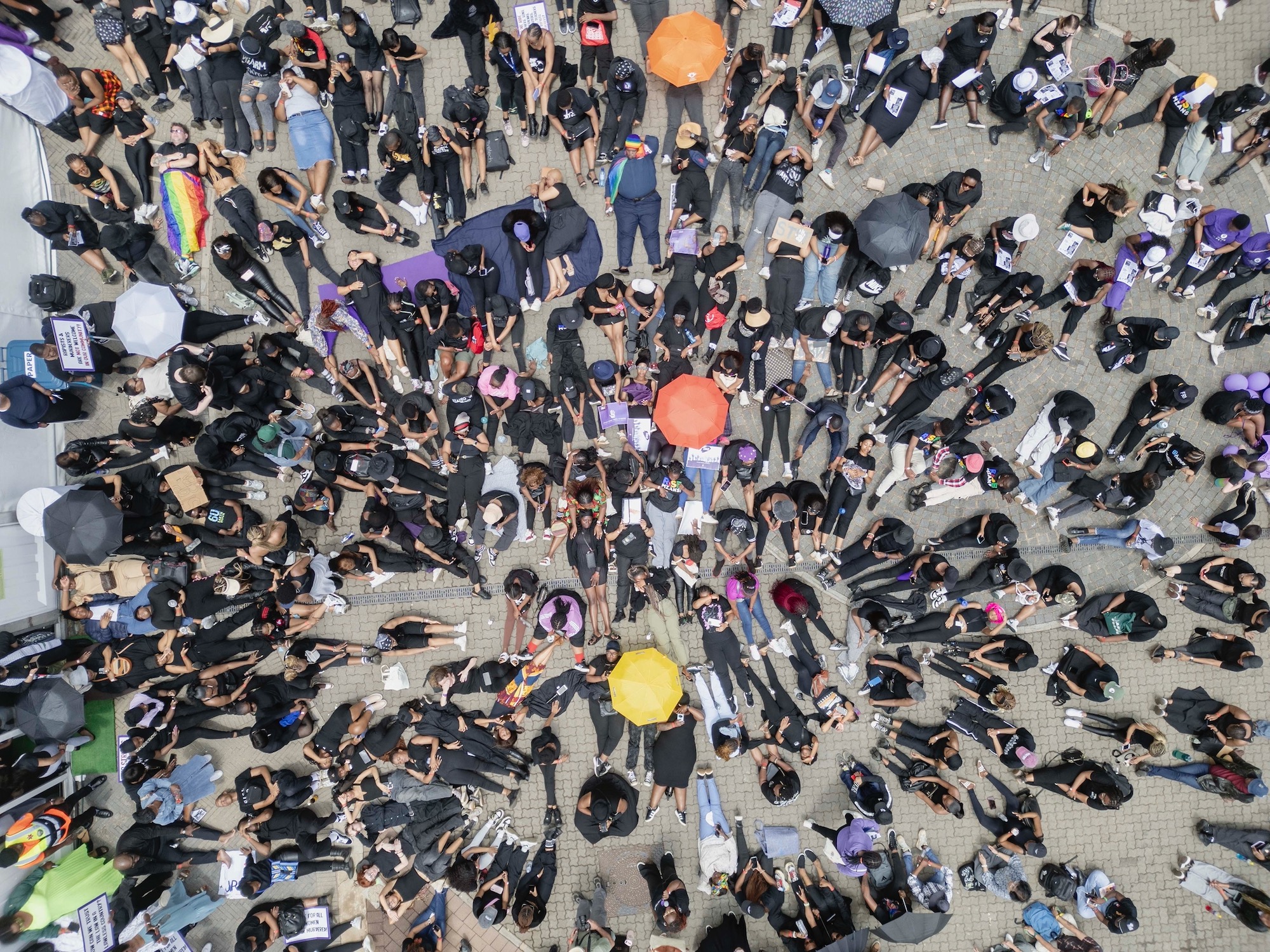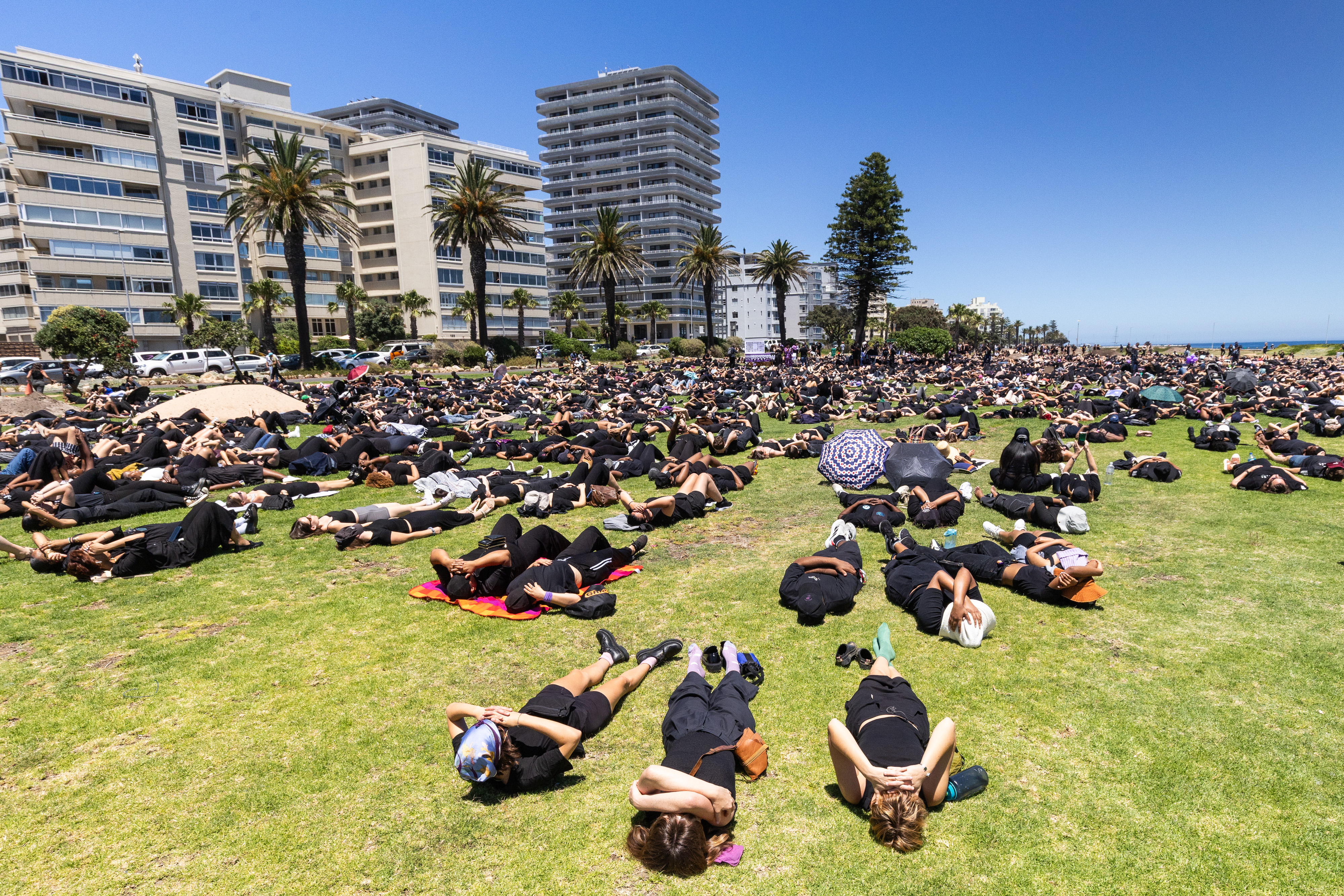 In Cape Town, people dressed in black gathered on the Sea Point promenade. At noon a silent lie-down was held for 15 minutes. Photo: Ashraf Hendricks