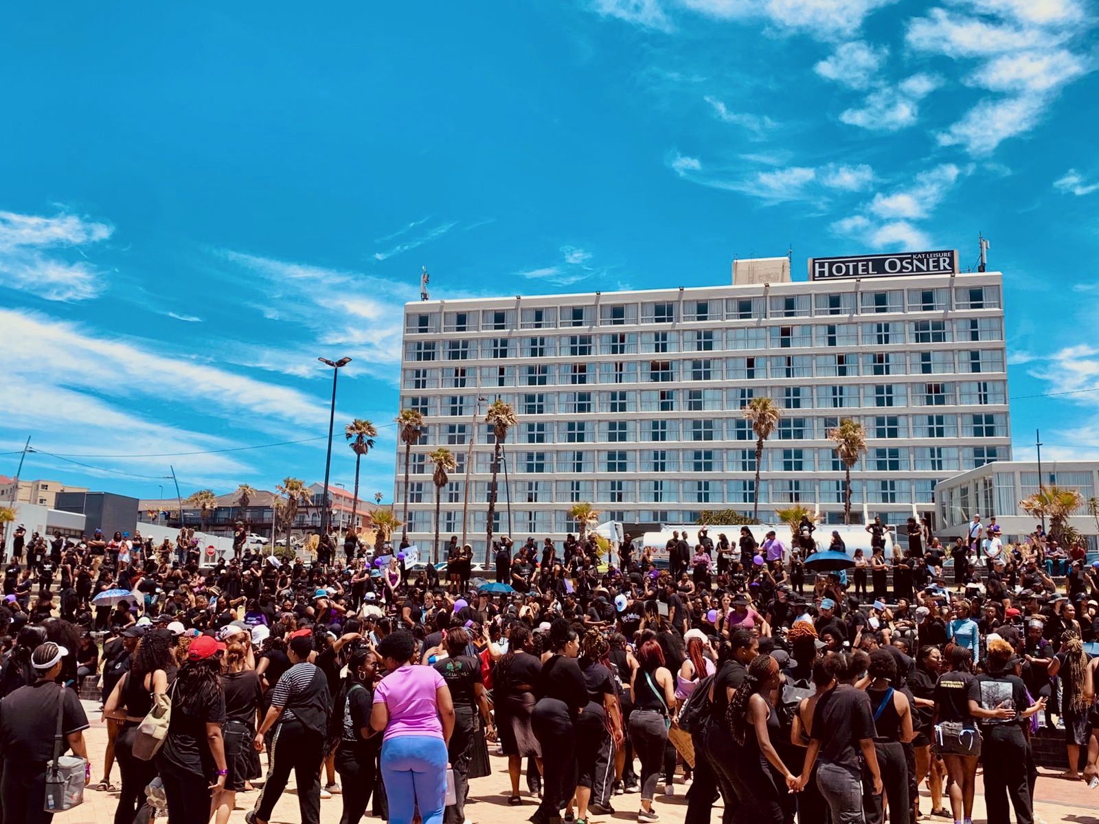 Hundreds of women, mostly dressed in black and purple gathered at south beach in Durban chanting “Wathinta bafazi wathinta imbokodo” (You strike the women you strike a rock). Photo: Tsoanelo Sefoloko