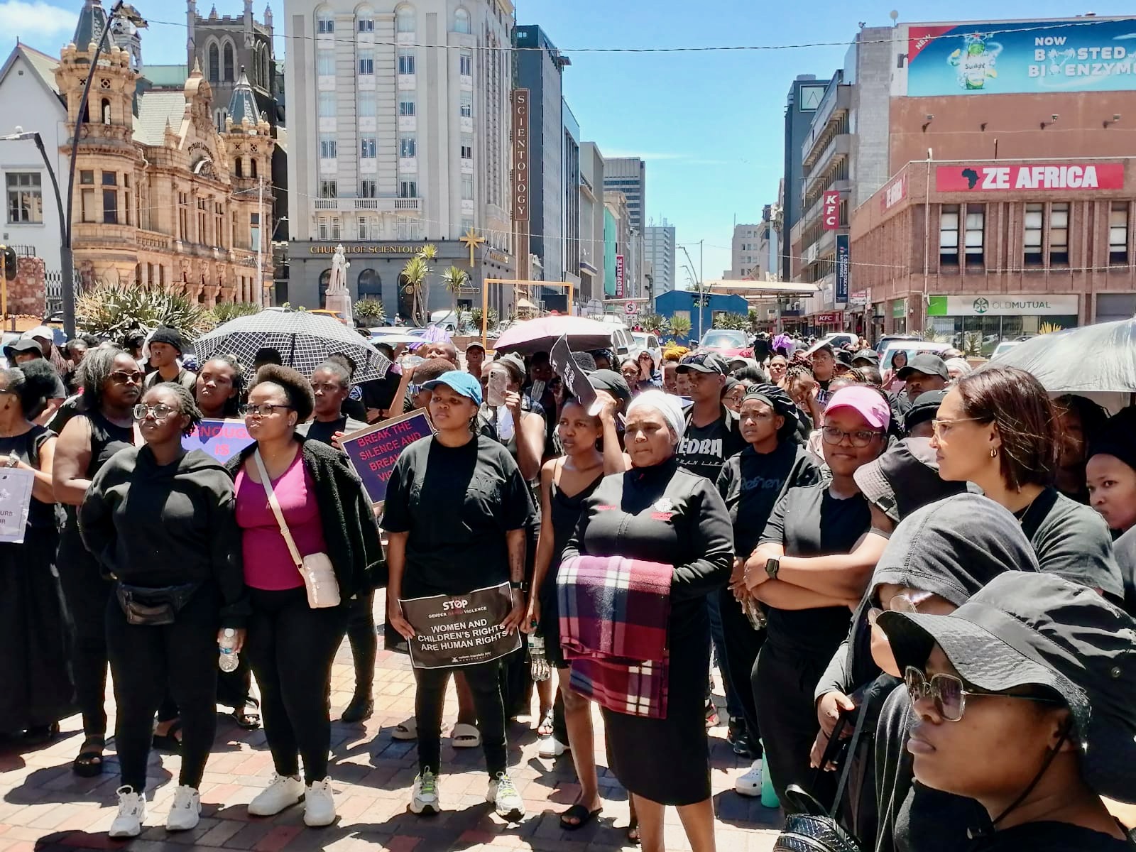 Hundreds of protestors gathered outside the East London City Hall and marched to Baby-Lee Recreational Park along the beachfront. Photo: Johnnie Isaacs