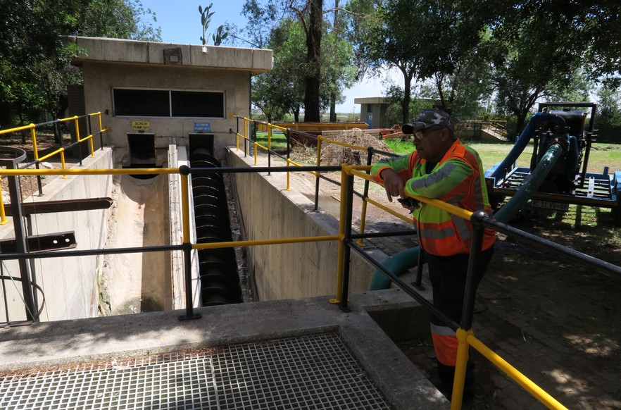 Councillor George Joseph inspects the Gogga sewage pump station.