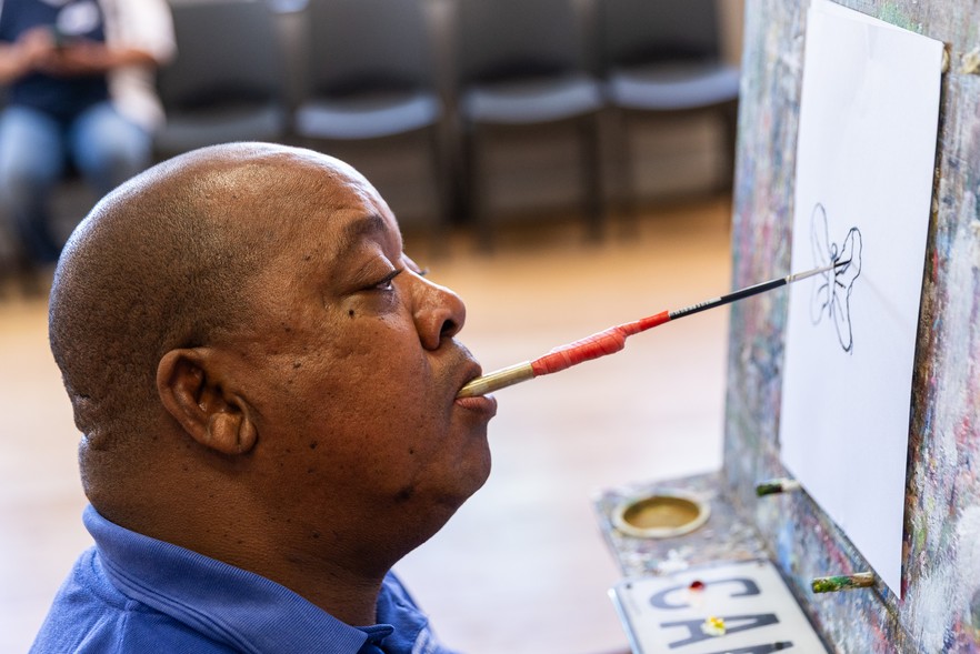 One of the activities still hosted at Artscape Theatre was a painting class offered by Brenton Swartz, who is paralysed from the neck down due to a gunshot accident in 1994 and paints using only his mouth.