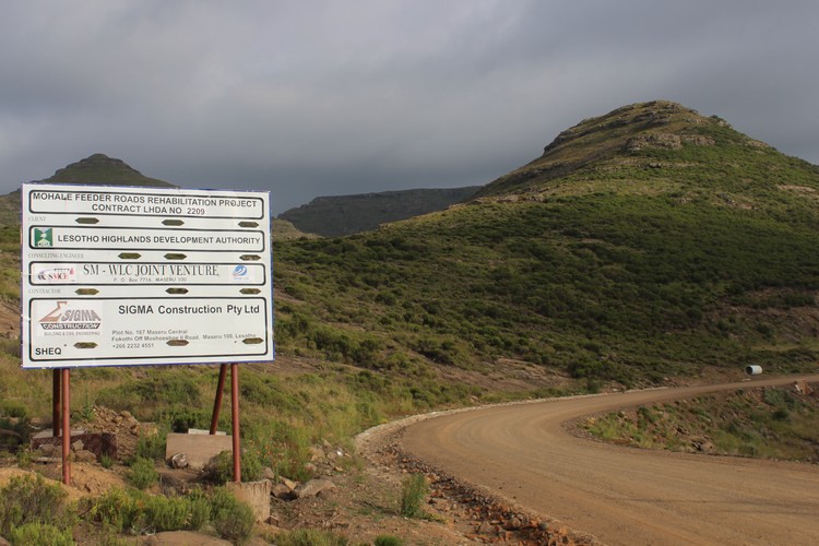 The Mohale Dam feeder road under construction.