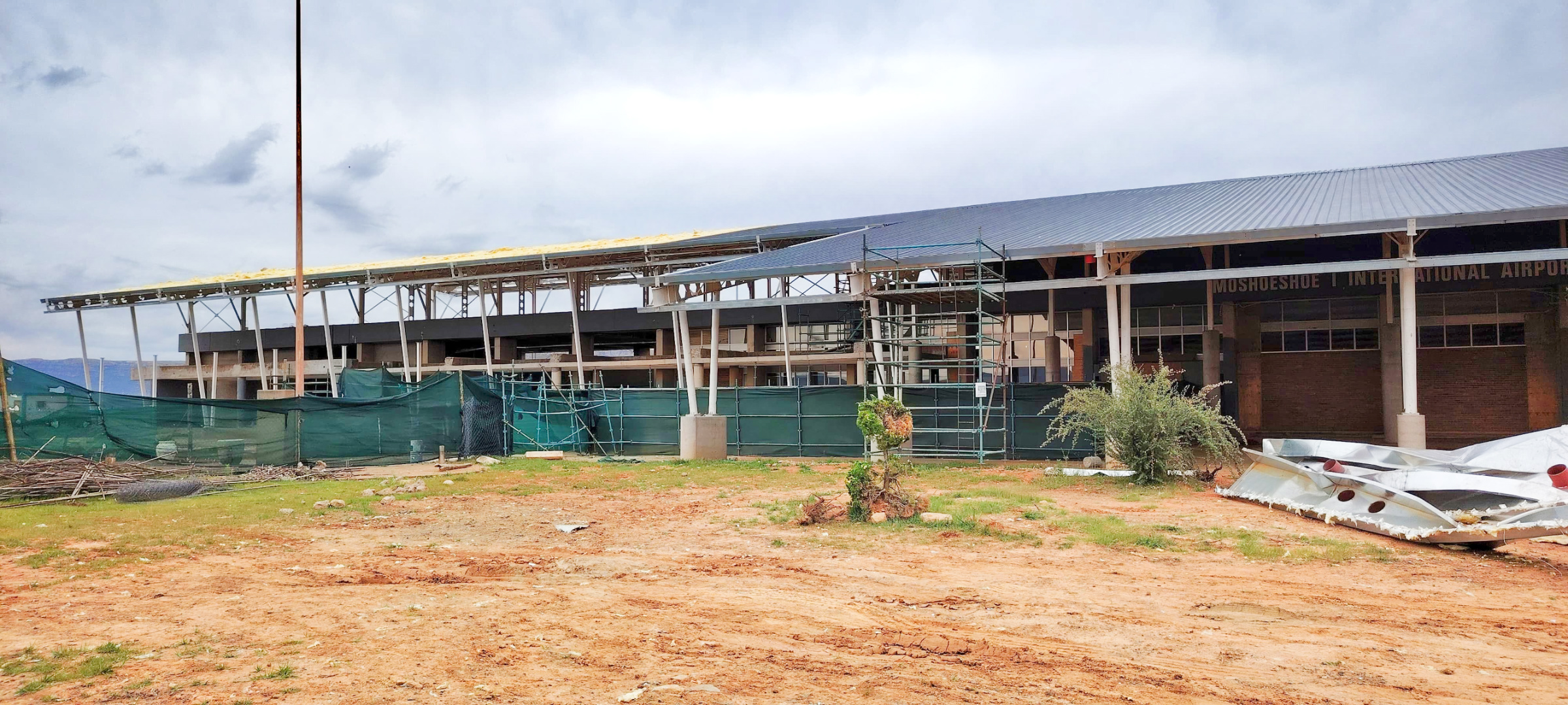 Wind ripped through ongoing renovations at Moshoeshoe I International Airport on New Year’s Eve, tearing off sections of newly installed roofing and laying bare not only the building’s structure but also the controversy surrounding a refurbishment tender award already condemned as unlawful.
