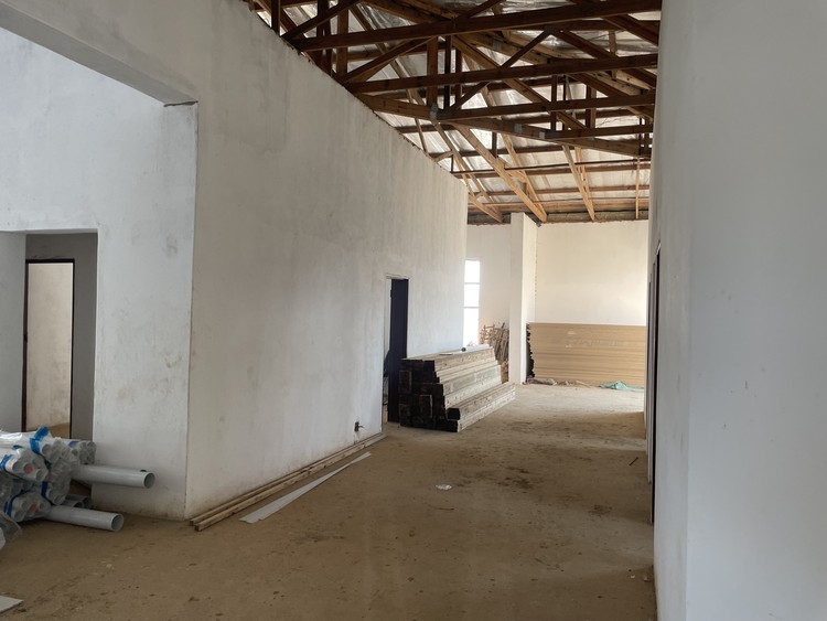 Although some channels have been cut into the walls for water pipes, none have been installed, and there are no toilets or ablutions on the premises. Grooves have been cut into the wall for electrical sockets and wiring, but little has been installed.