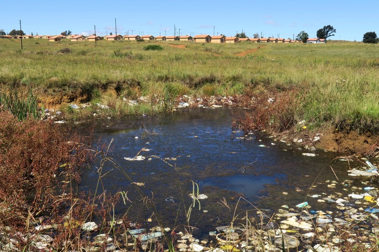When residents of the new state-built houses in Madala, Emakhazeni, flush their toilets, the sewage ends up here. According to a ward councillor, bulk infrastructure such as water and sewerage was not installed when the houses were built.
