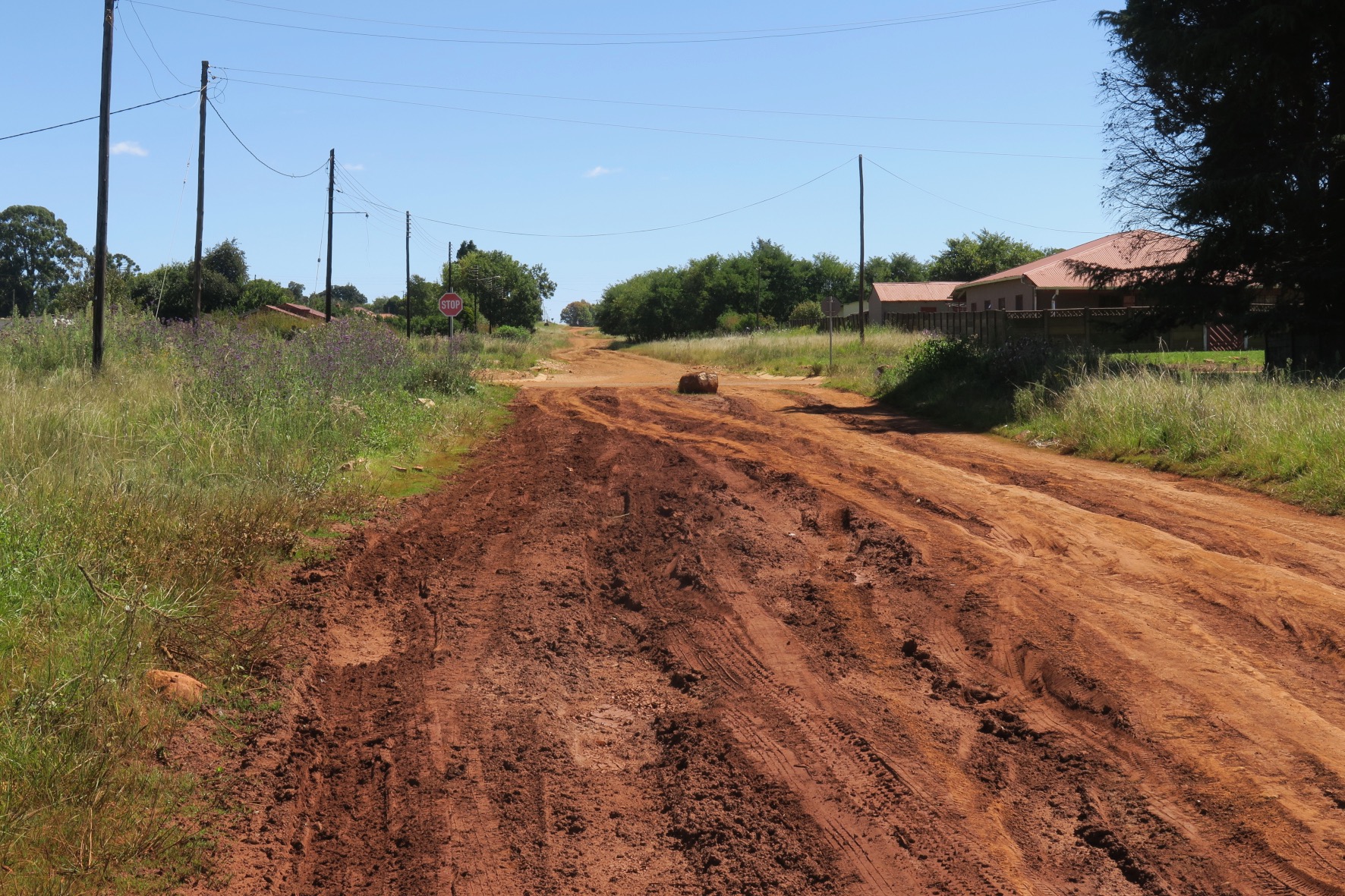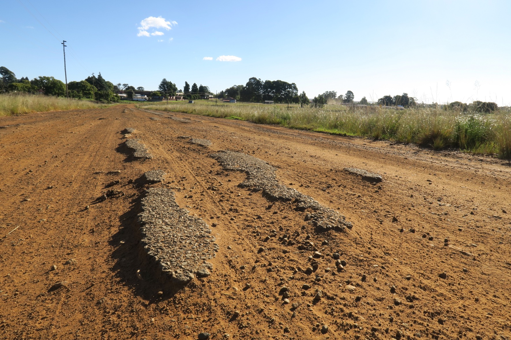 A residential street in Emakhazeni. Few residential roads are tarred.