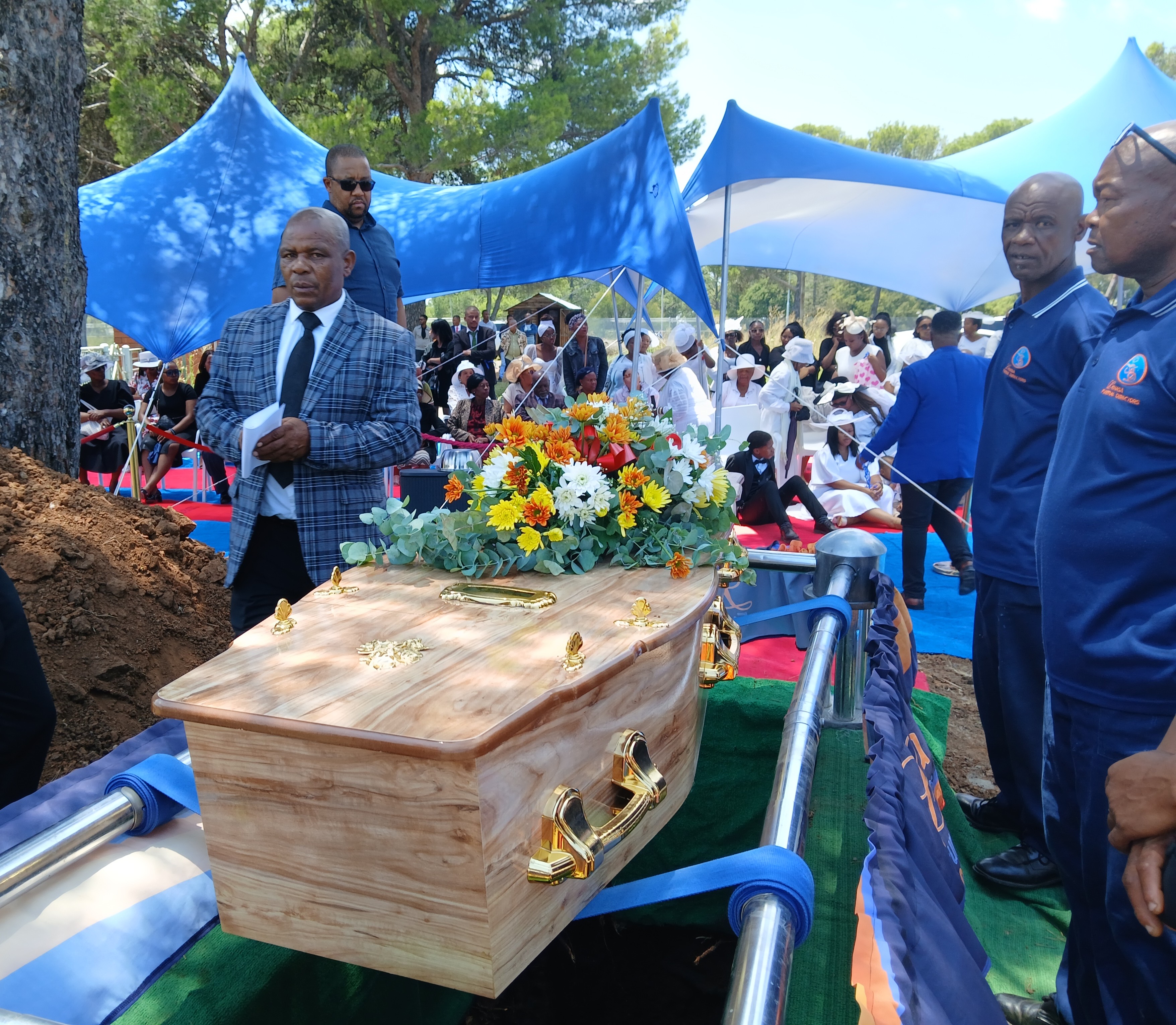 Family and friends attend the burial ceremony of Msindisi Phike on Wednesday. In 2021, the 21-year-old was buried by the state as a pauper without his family’s consent. Photo: Becker Semela