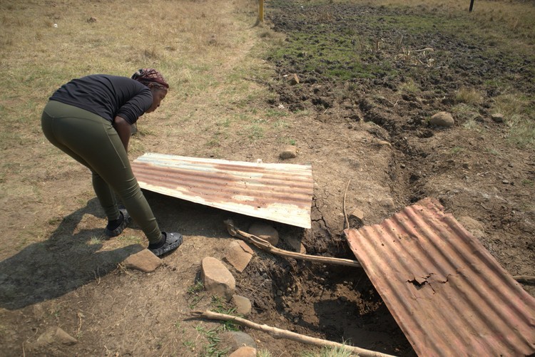 Thandeka Mnyandu has built an outhouse with a pit toilet because there is not enough water to use her flushing toilet.