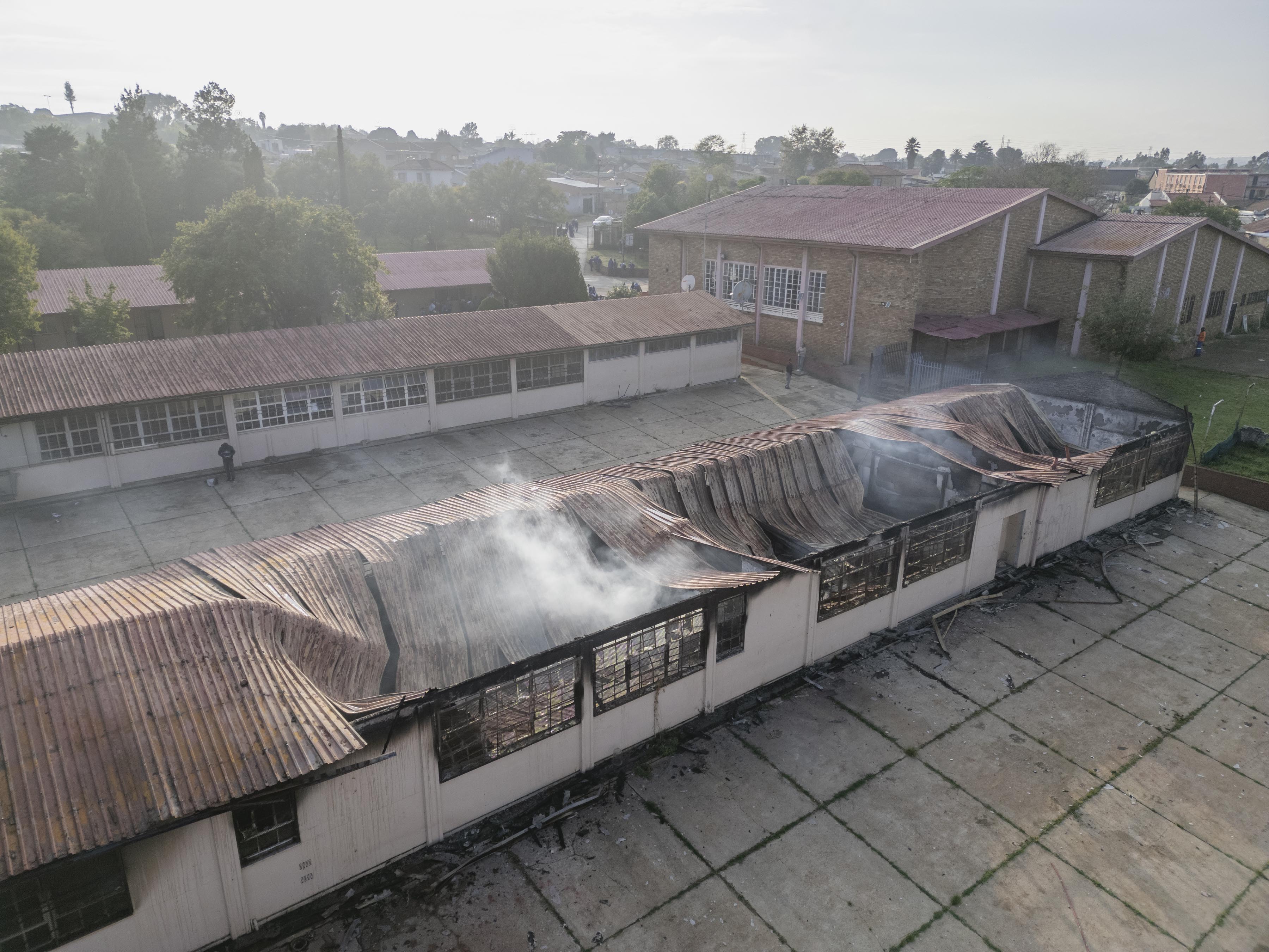At the end of April last year, a fire destroyed 11 classrooms behind the building that burned on Tuesday. Police opened an arson case, and the Gauteng Department of Education provided mobile classrooms for affected learners.