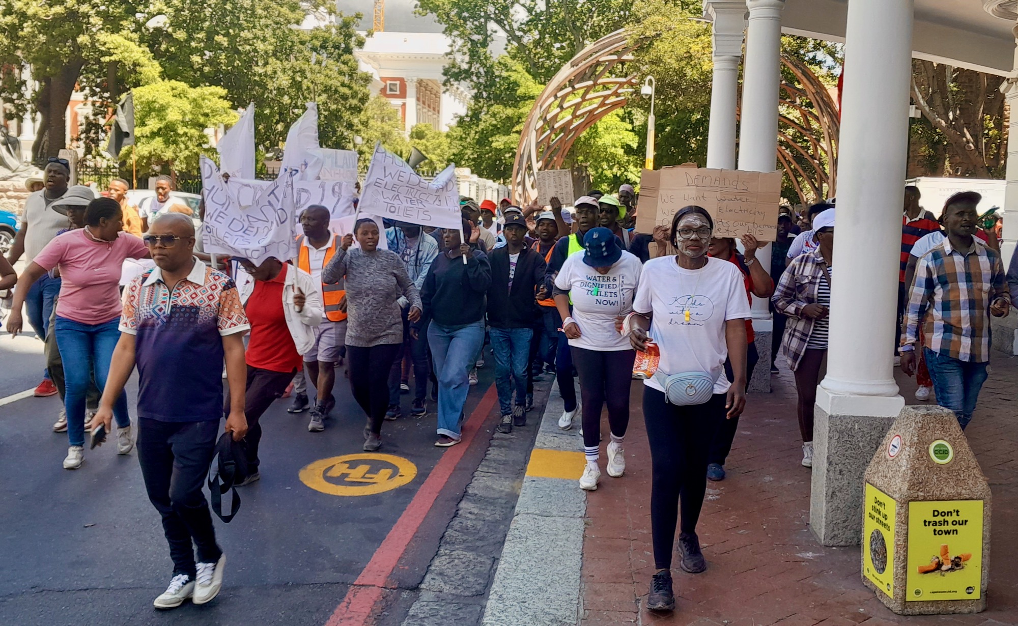 About 100 residents of Covid informal settlement in Mfuleni marched on Friday to the Western Cape premier’s office and the Cape Town mayor’s office at the civic center to demand services.