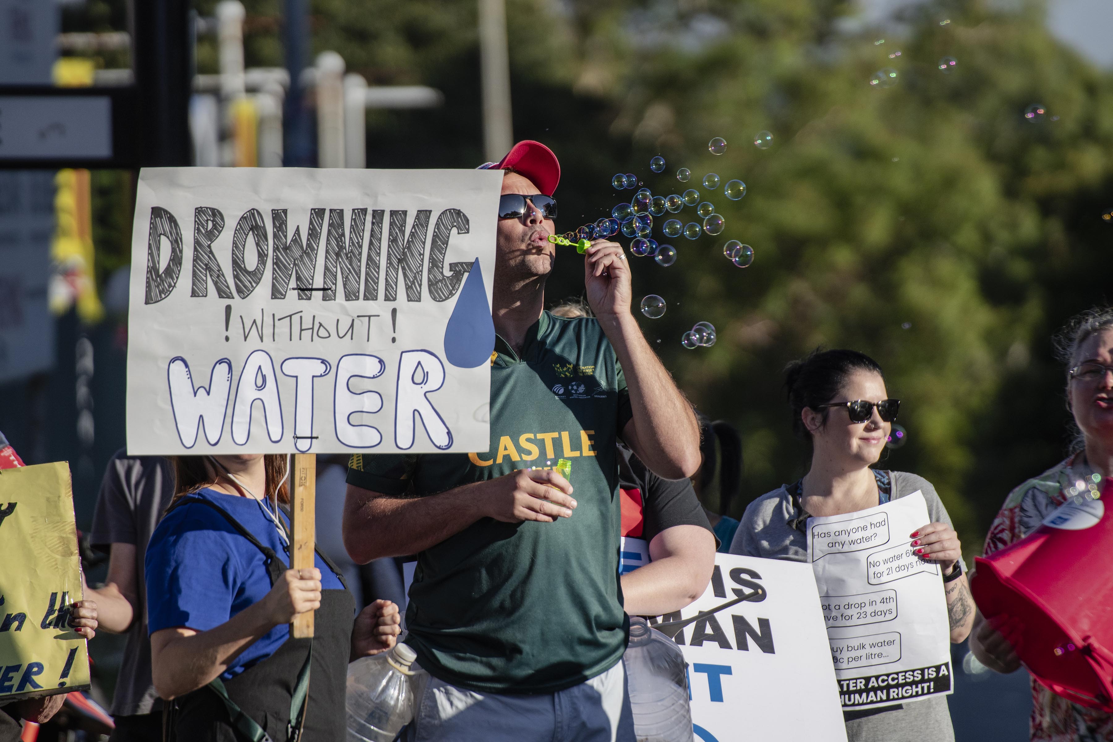In Melville, about 150 residents from various neighbourhoods demonstrated by carrying empty plastic bottles and banners, demanding water and accountability from officials.