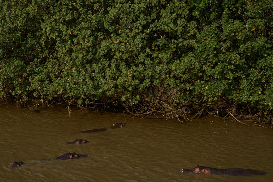 Lake St Lucia, South Africa’s largest estuarine lake, is home to about a thousand hippopotamuses (hippos). The large semi-aquatic mammals spend most days submerged in the shallows of the estuary.