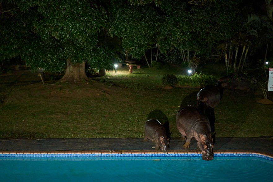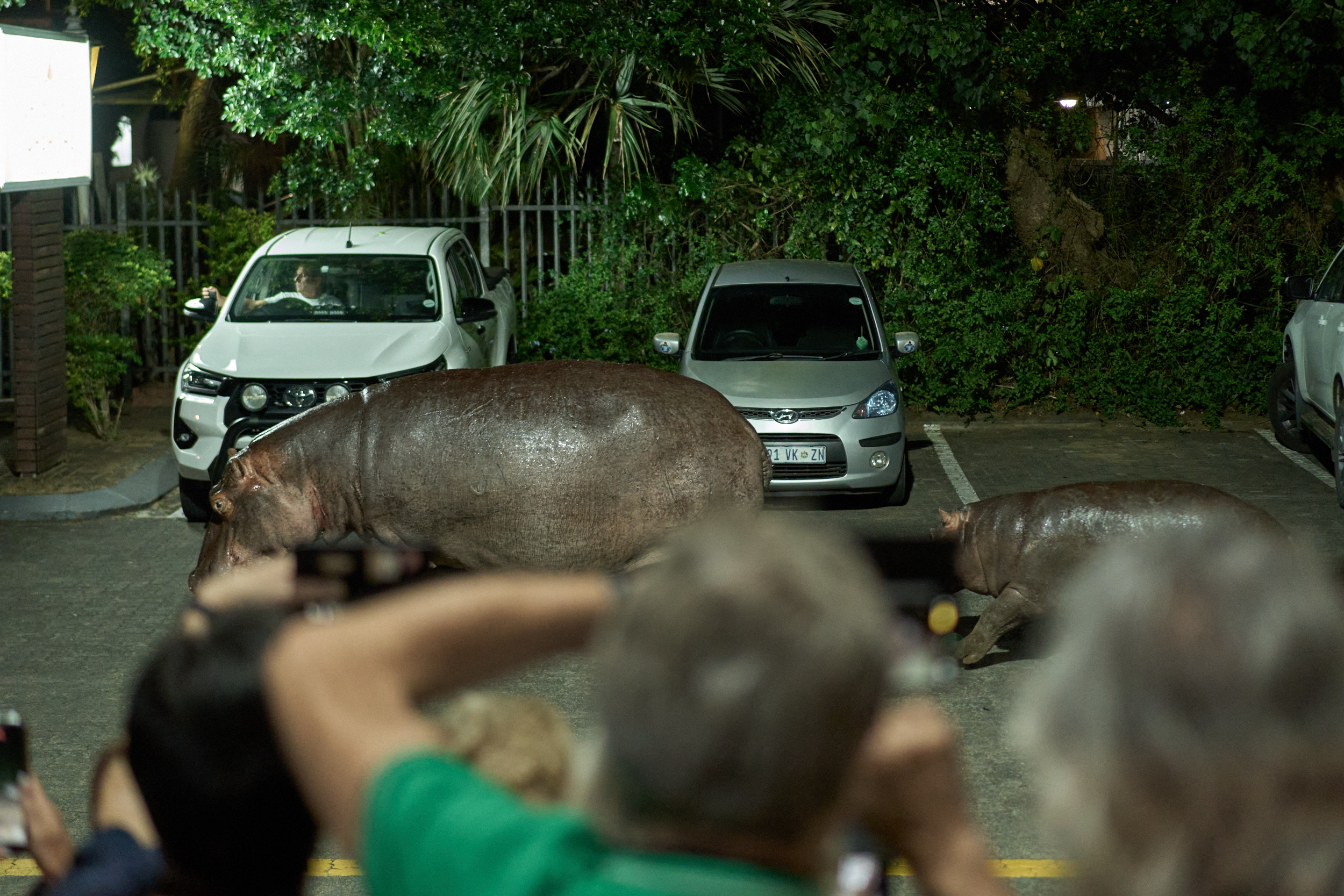Tourists often get a closer view of hippos at night when they wander into town than on their excursions on Lake St Lucia.