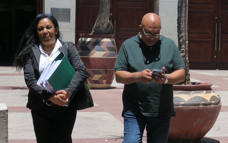 Cheryl Sjoberg and Nadir Mohiudeen leaving court on Monday. Photo: Steve Kretzmann