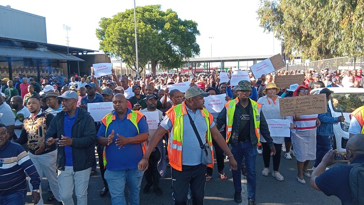 Under a heavy police presence on Monday, dozens of drivers marched to the Nyanga police station, demanding better policing and the proper investigation of extortion cases. They said there has been no progress in cases recently opened by CATA members.