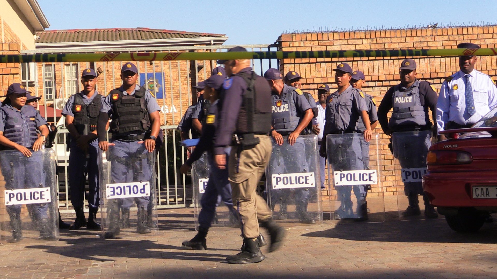 Under a heavy police presence on Monday, dozens of drivers marched to the Nyanga police station, demanding better policing and the proper investigation of extortion cases. They said there has been no progress in cases recently opened by CATA members.