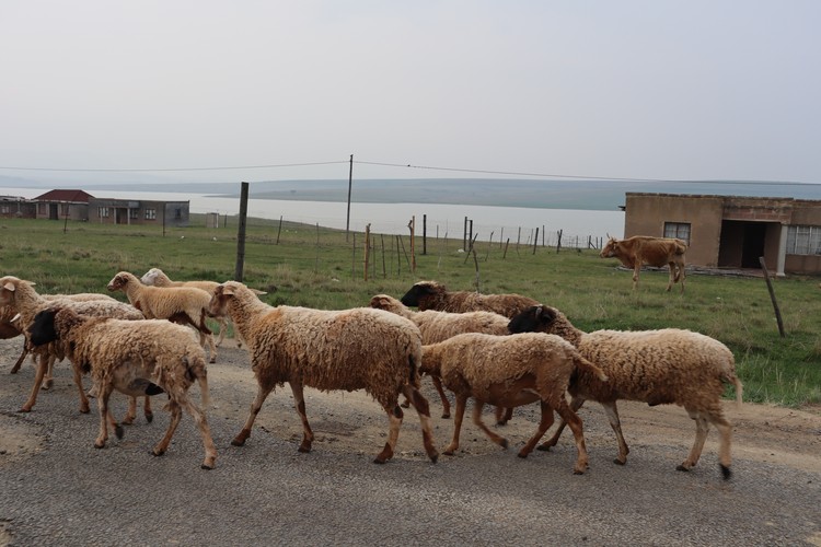 Livestock wander the roads of Oliviershoek on the west bank of Woodstock Dam.