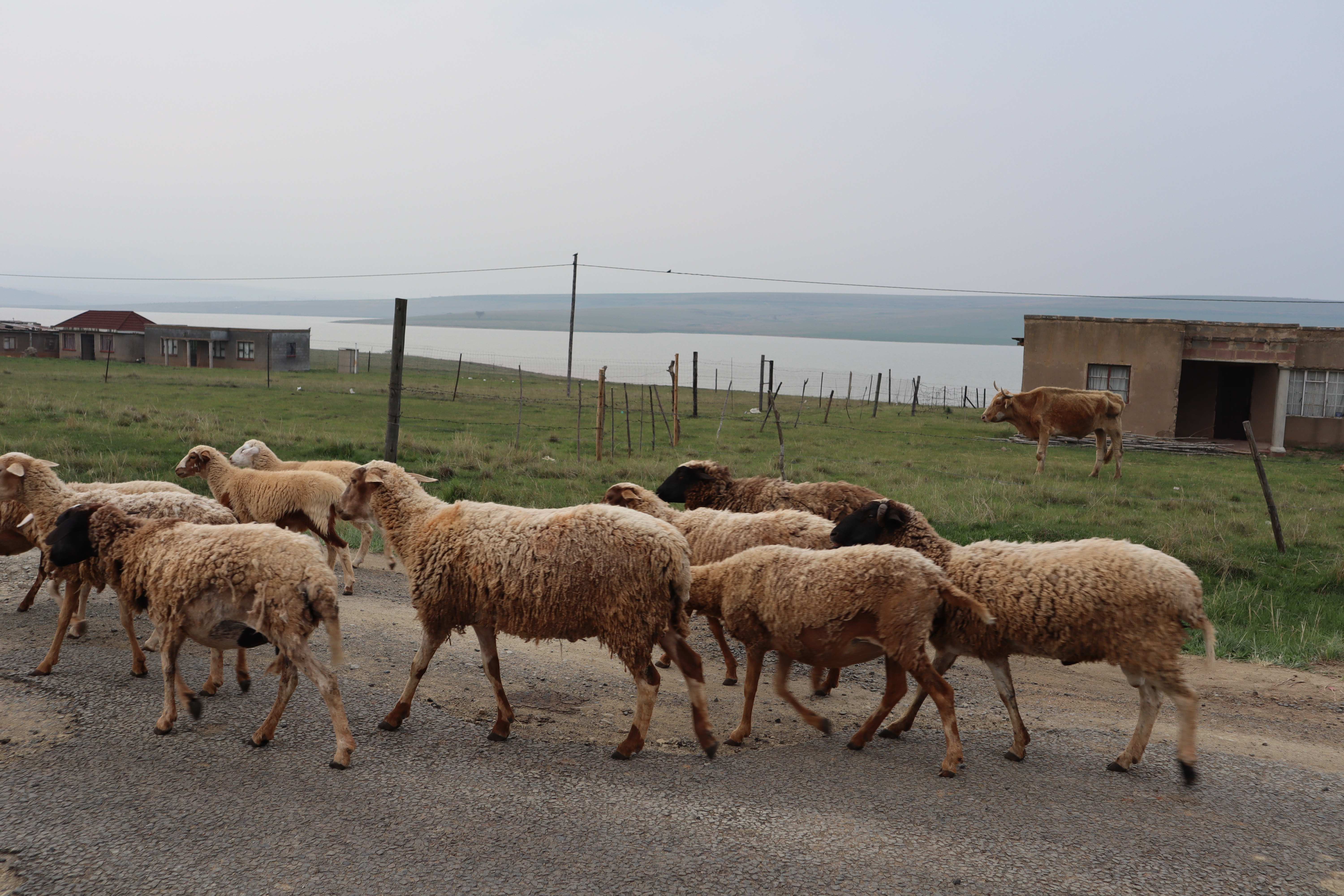 Livestock wander the roads of Oliviershoek on the west bank of Woodstock Dam.