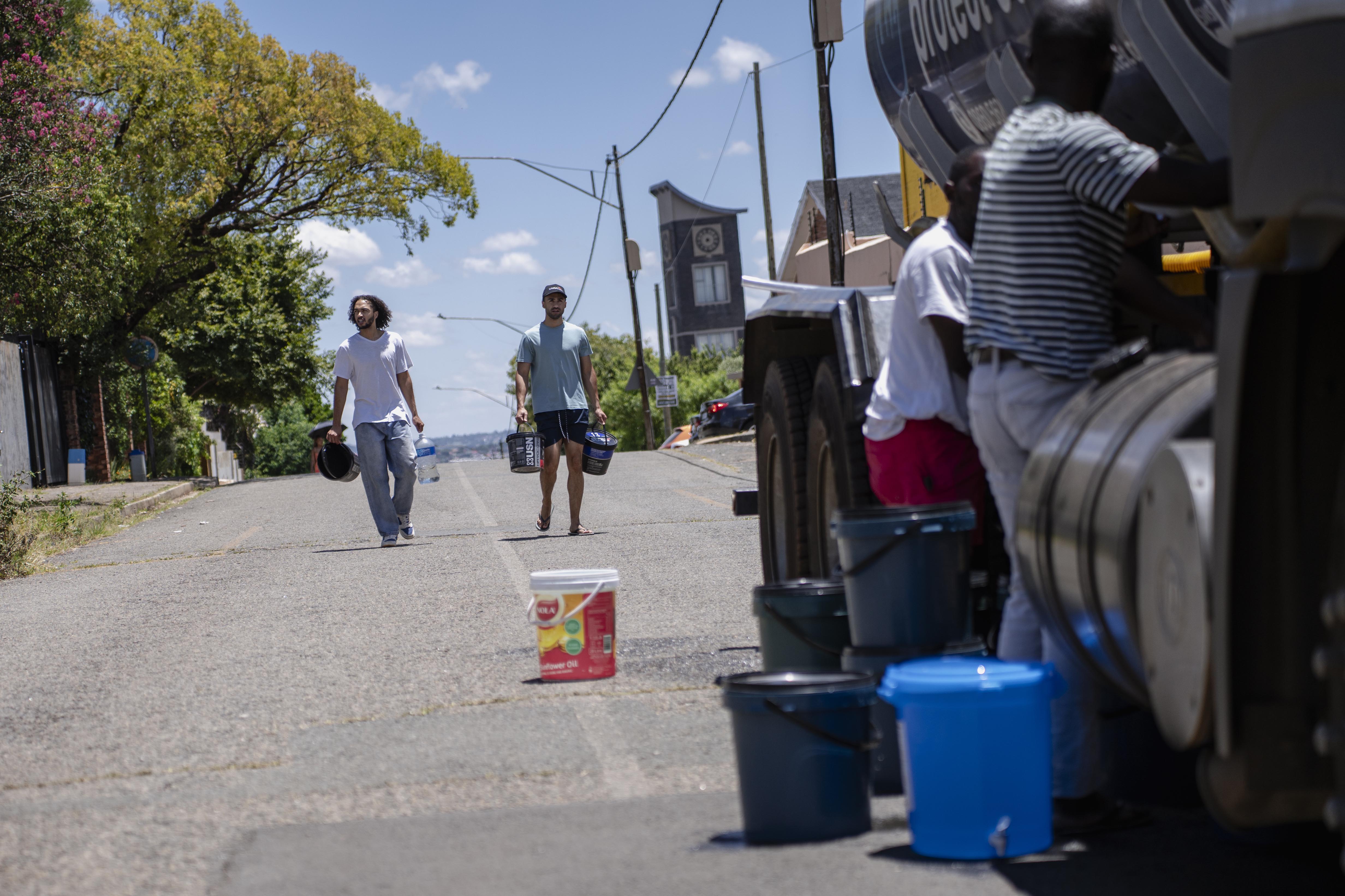 The neighbouring suburb of Brixton is also without tap water. GroundUp found students and residents making their way to a water truck with whatever plastic buckets they could find to collect water to last them the day.