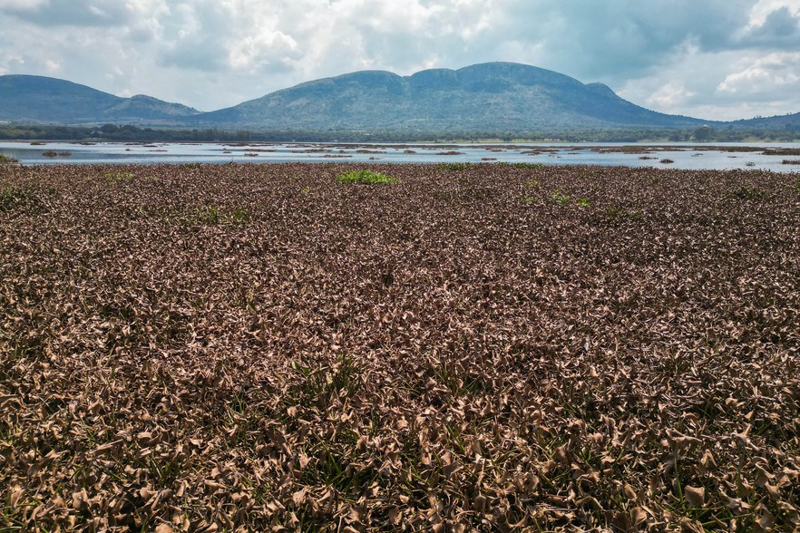 Dr Kelby English from the Centre for Biological Control (CBC), which oversees the biological control strategy at the dam, says the use of water hyacinth plant hoppers (Megamelus scutellaris) has led to progress. These are tiny insects about 3mm in size, which pierce the tissue of the hyacinth, causing it to rot and lose buoyancy.