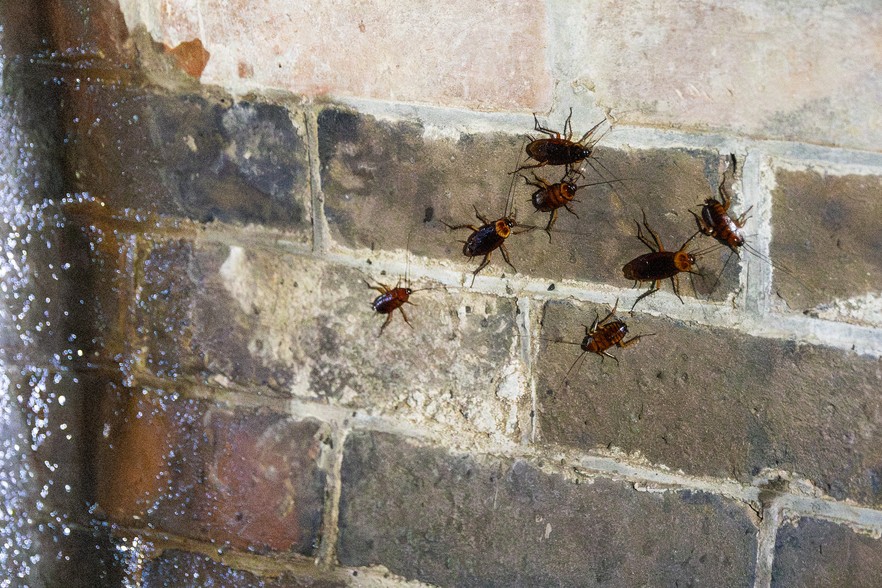 The walls and the arched roofs are brick. Cockroaches scurry about. Spiders are mostly motionless in their webs. Other creatures in the tunnels include frogs and crabs. Without lights, you can barely see anything at all.