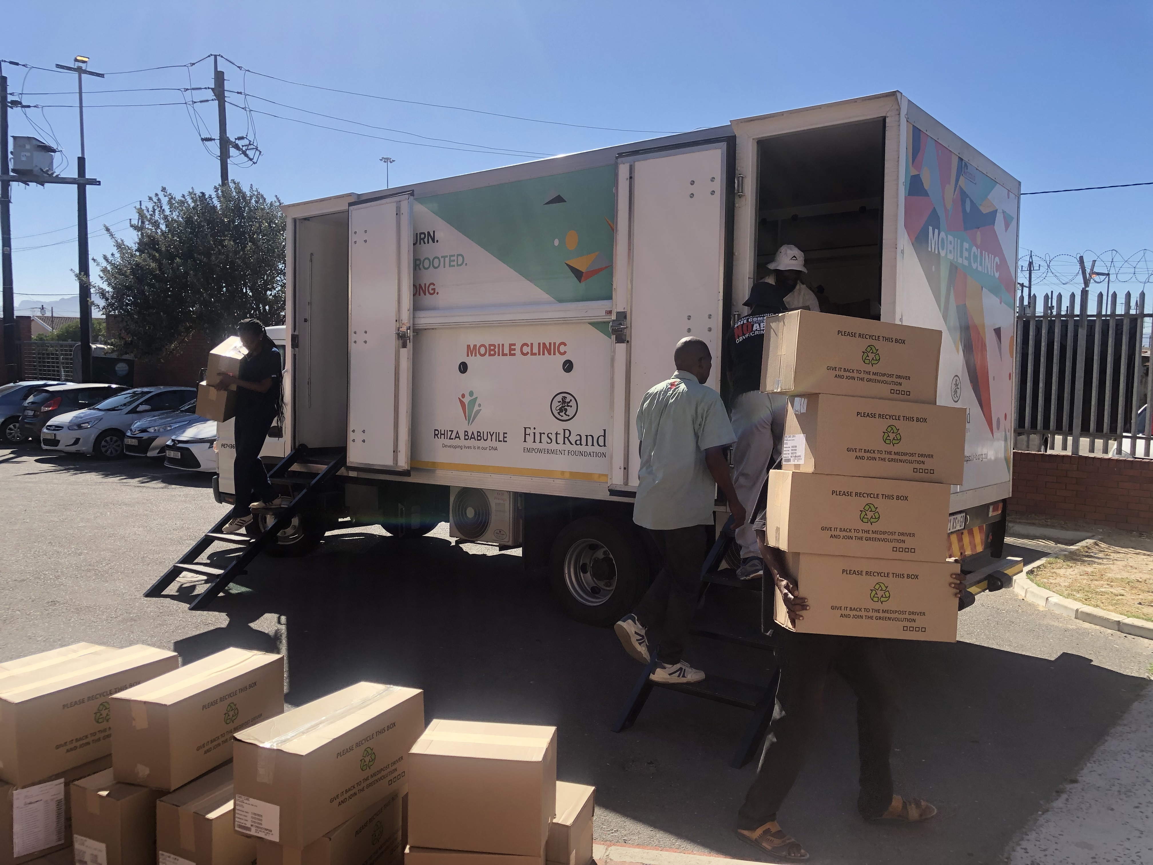 A mobile clinic delivered extra medicines just before 10am. Photo: Mary-Anne Gontsana