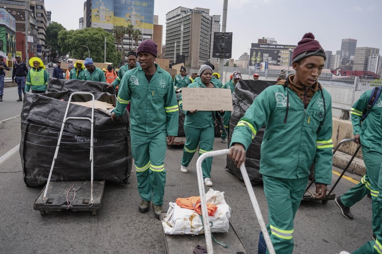 Waste reclaimers demonstrate in September after Pikitup and the City of Johannesburg stopped accepting domestic waste at the Marie-Louise landfill. Photo: Ihsaan Haffejee