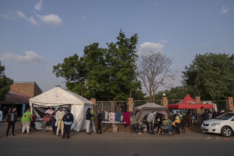 Protesters camp outside Soweto police station after a surge in gun deaths